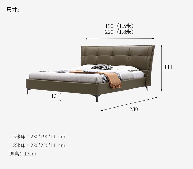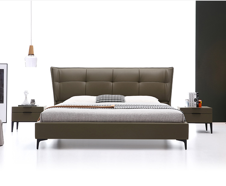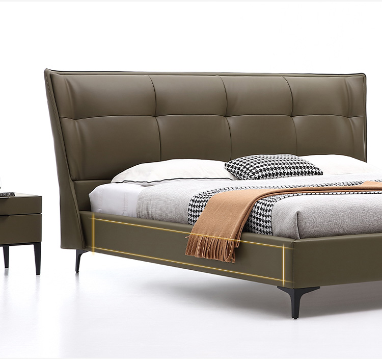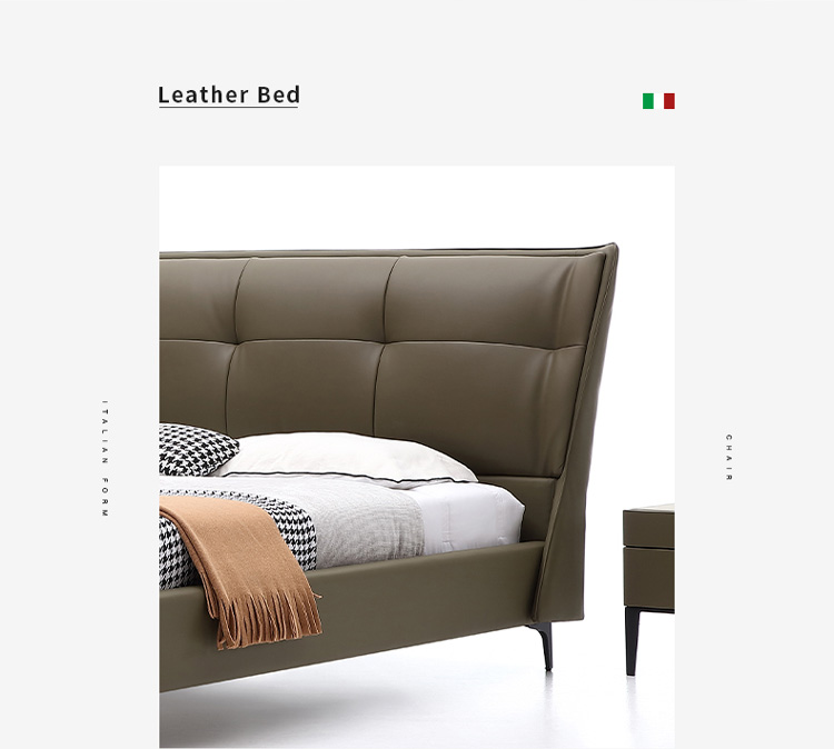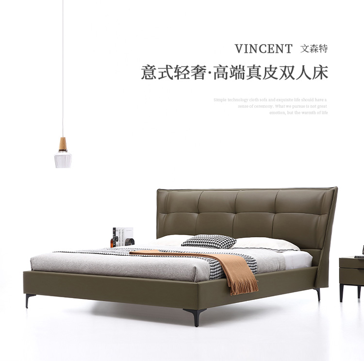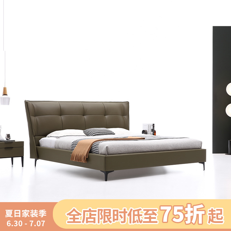 Кожаная кровать Light Роскошная современная шедеврная кровать двуспальная кровать современная минималистская мягкая кровать 1,8 метра небольшая квартира кожаная кровать