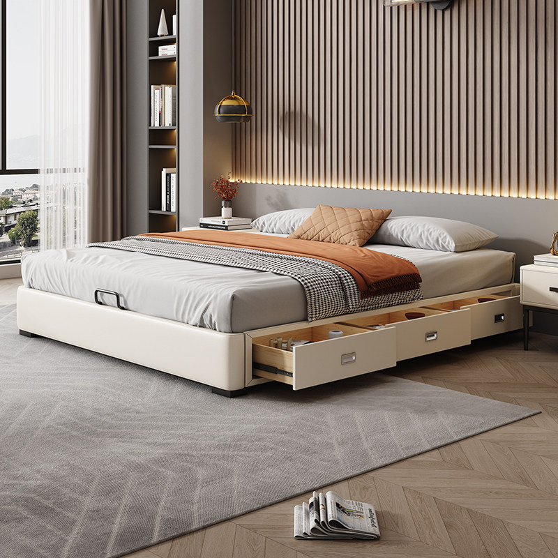 佐慕 Современная и минималистичная коробочка для хранения для кровати для двоих из натурального дерева, скелет