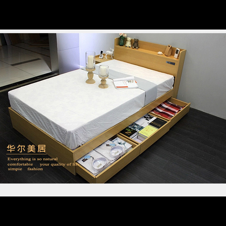 Японская стиль татами кровать простая современная кровать для хранения кровати для бокса Высокая коробка свадебная кровать 1,5 метра 1,8 Деревянная кровать деревянная кровать
