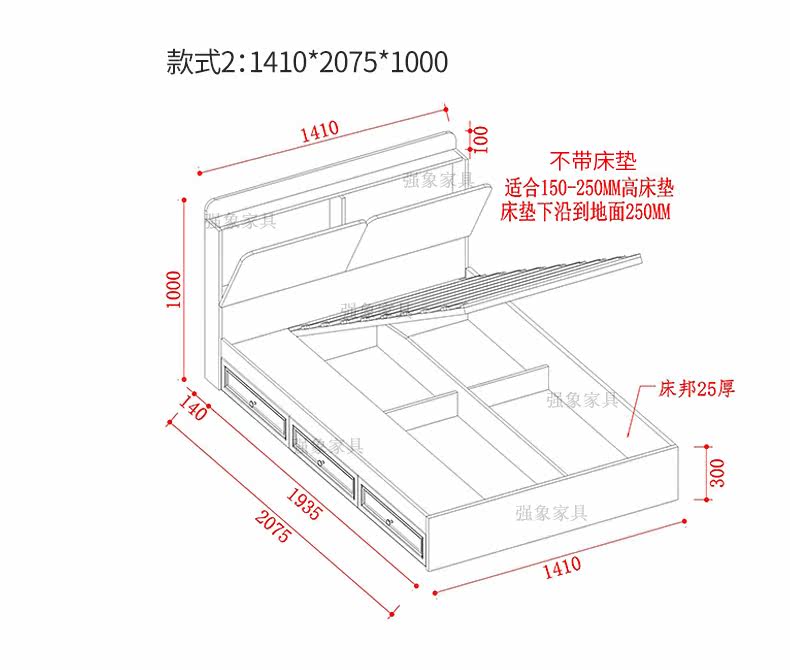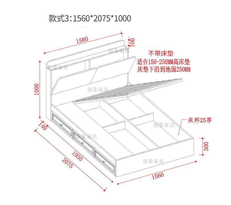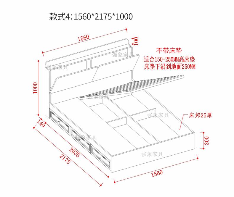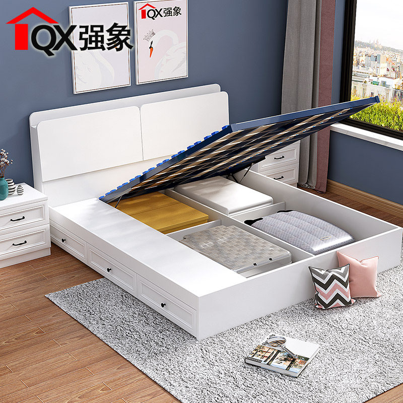 强象 Современная простая европейская кровать для хранения в спальне, высокая кровать-коробка, 1,5 метра, 1,8 двуспальная кровать с выдвижным ящиком, кровать для хранения CH-016