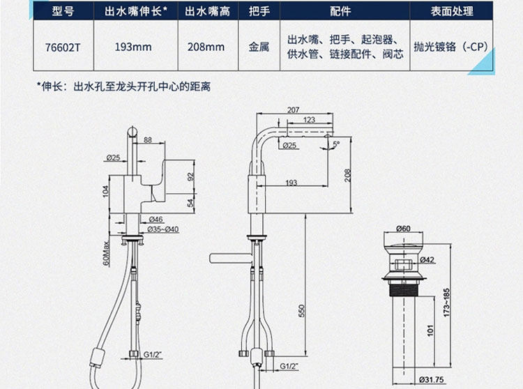 Коллио вытаскивает бассейн табличный бассейн в ванне Холодную и холодную воду головка 76602T-4-CP