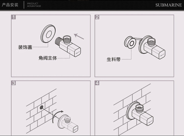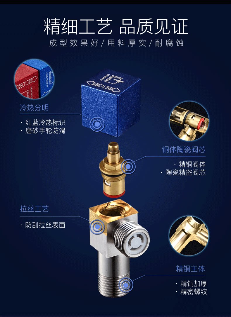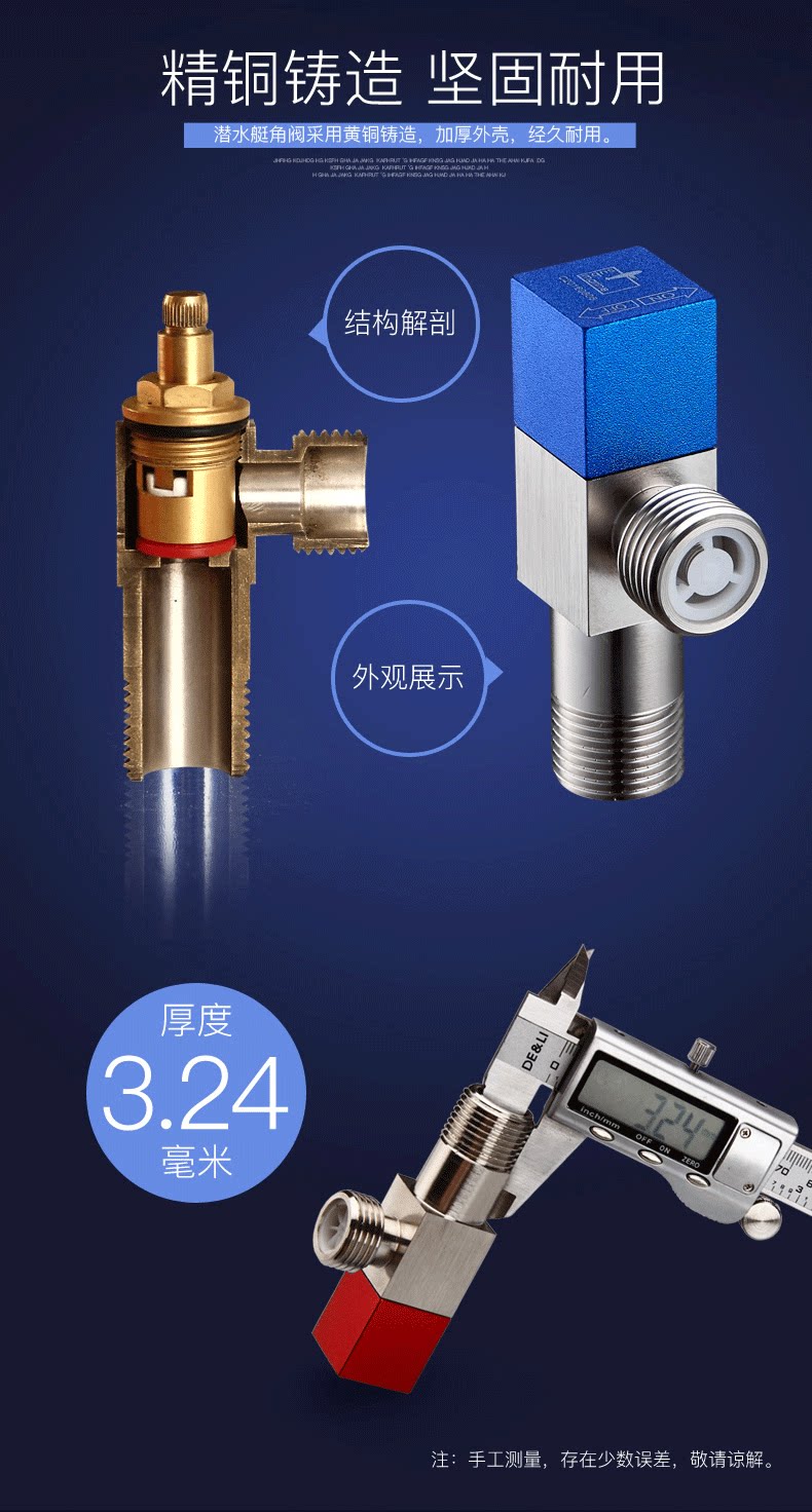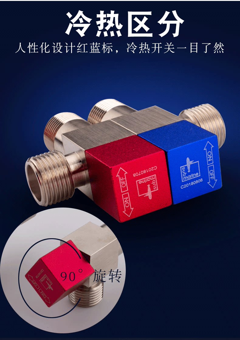 Подлинная подводная лодка, полностью медный расширенный треугольный клапан, переключатель смесителя, бытовой водонагреватель, горячая и холодная вода, 4-точечный клапан