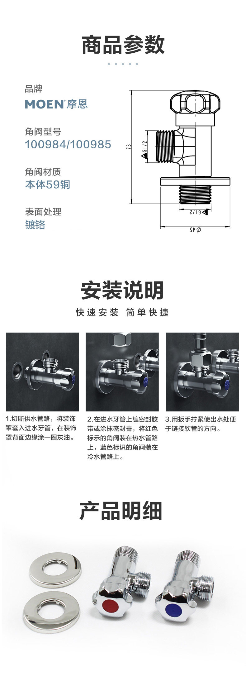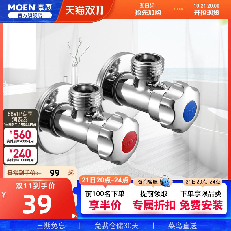 摩恩 Кухонные туалетные аксессуары сгущенной горячей и холодной воды Универсальный угловой клапан Остановка воды.