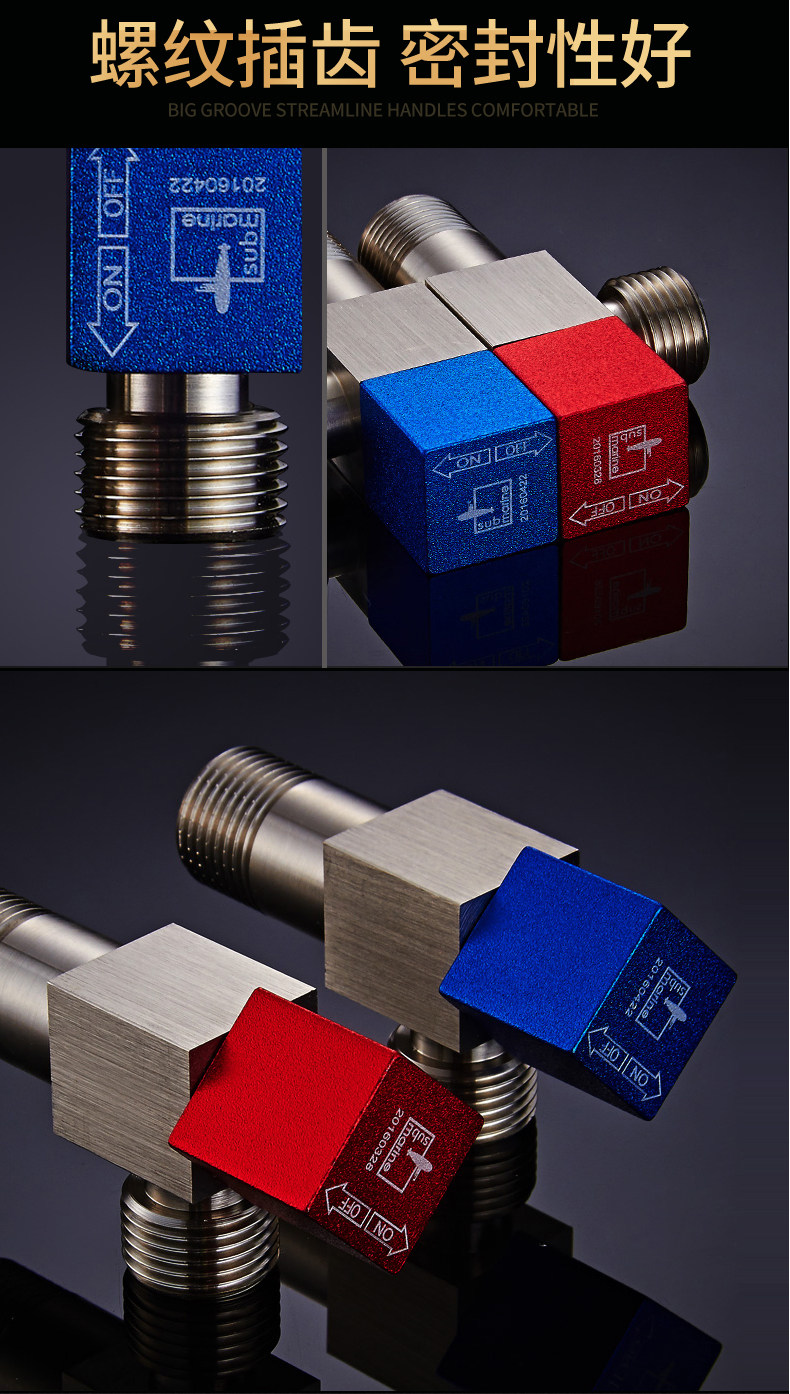 Подводный полностью медный утолщенный угловой клапан, красный и синий угловой клапан, треугольный клапан, универсальный 4-точечный угловой клапан для горячей и холодной воды, четырехугольный клапан для горячей и холодной воды