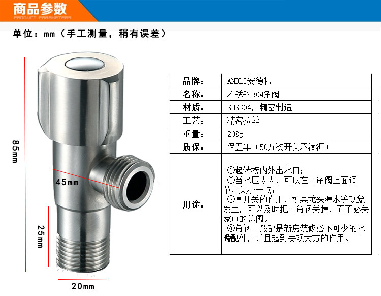 | Цвет: | Толстый 304 угловой клапан из нержавеющей стали холодная вода, Горячая вода из нержавеющей стали 304 из нержавеющей стали., Новый продукт 304 Угловой клапан из нержавеющей стали холодная вода, Новая горячая вода из нержавеющей стали 304 |