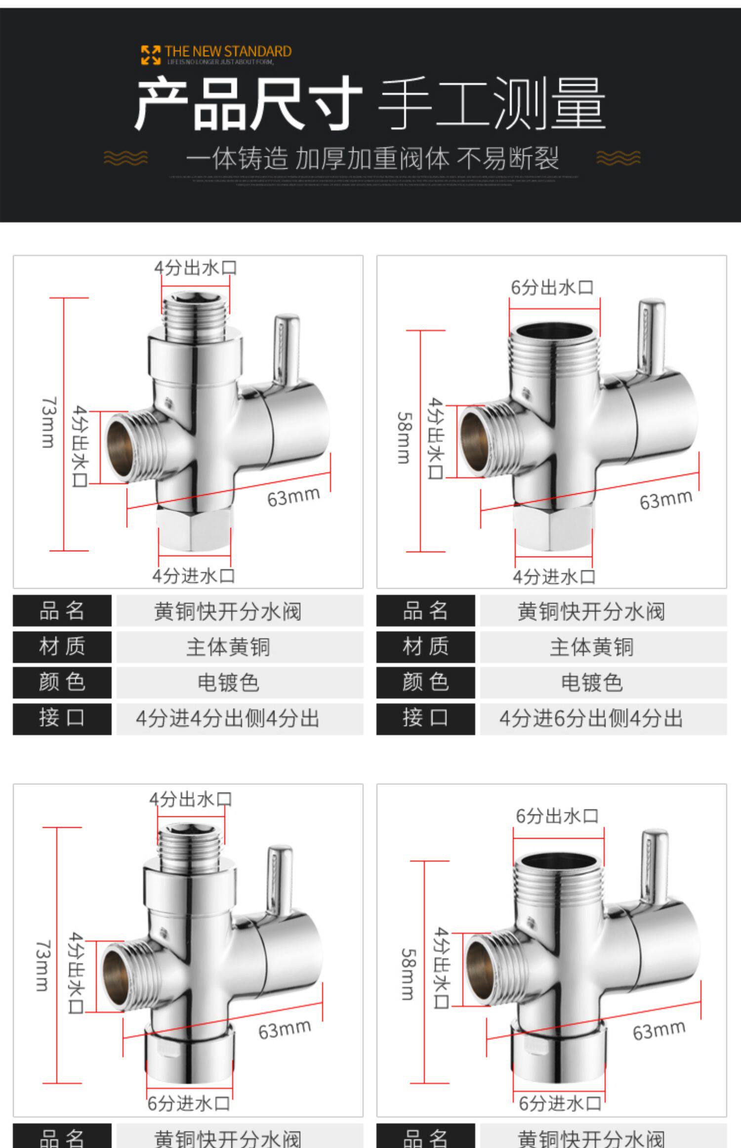 Распределитель воды для душа, полностью медный, быстрооткрывающийся душ, трехходовой клапан распределения воды «один в два», 4 точки, 6 точек, преобразователь, разъем для аксессуаров