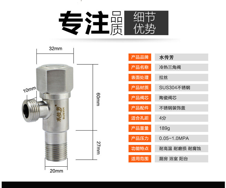 Медный горячий и холодный длинный переключатель из нержавеющей стали, тройник, увеличенная толщина