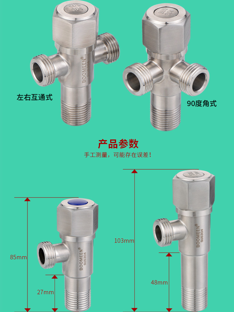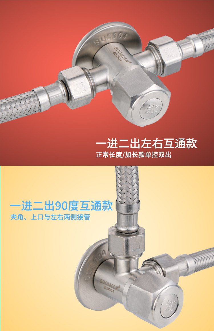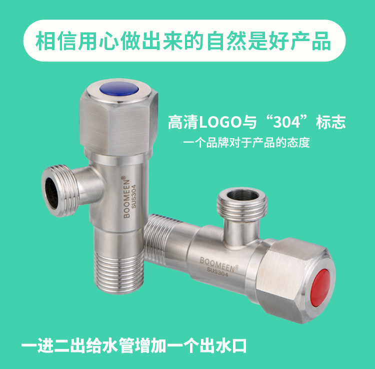 304 Треугольник из нержавеющей стали из нержавеющей стали из нержавеющей стали с тремя угловым клапаном, утолщенным утолщенным холодным и холодным, один вход, два угловых клапана удлиняются
