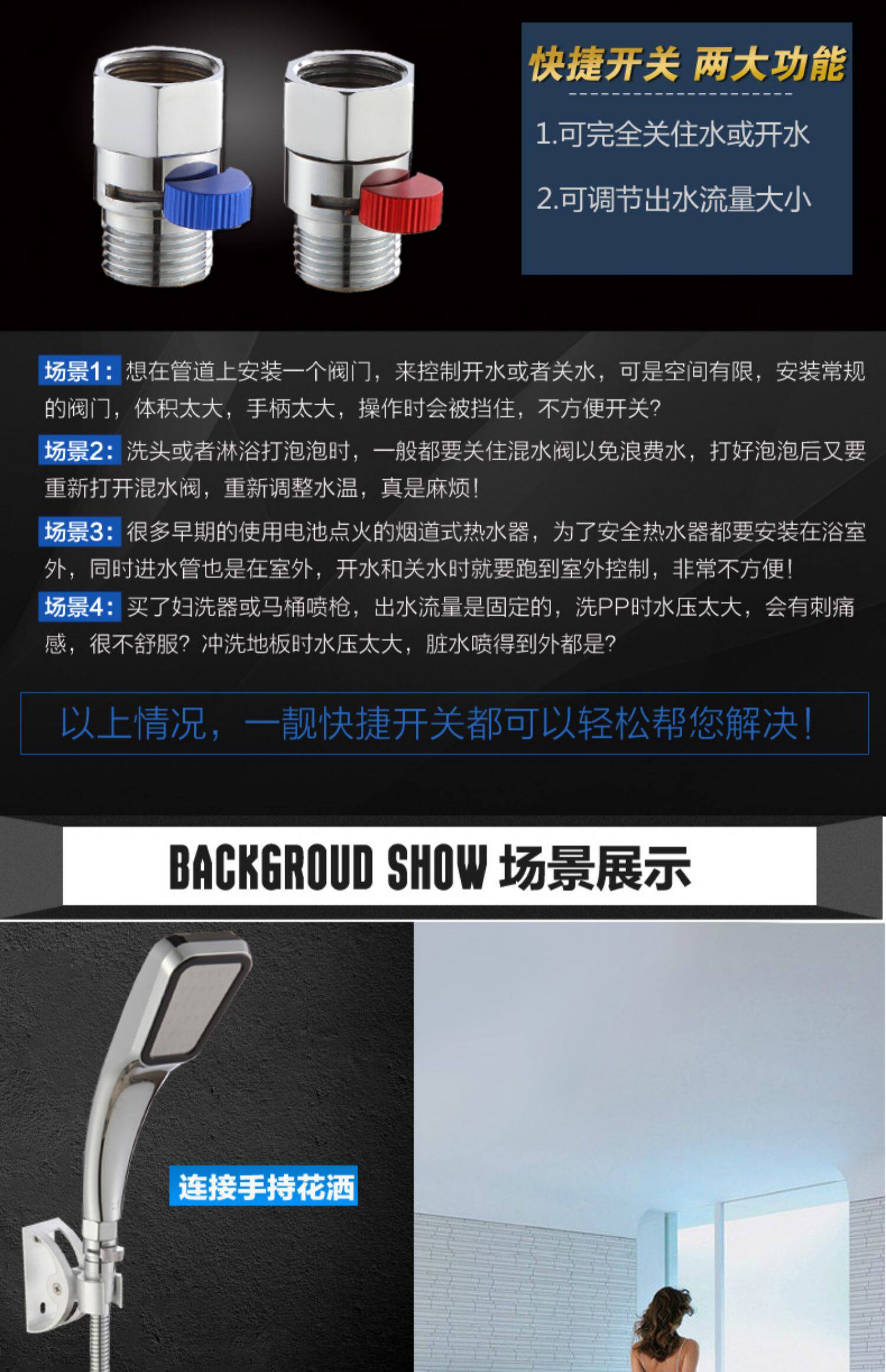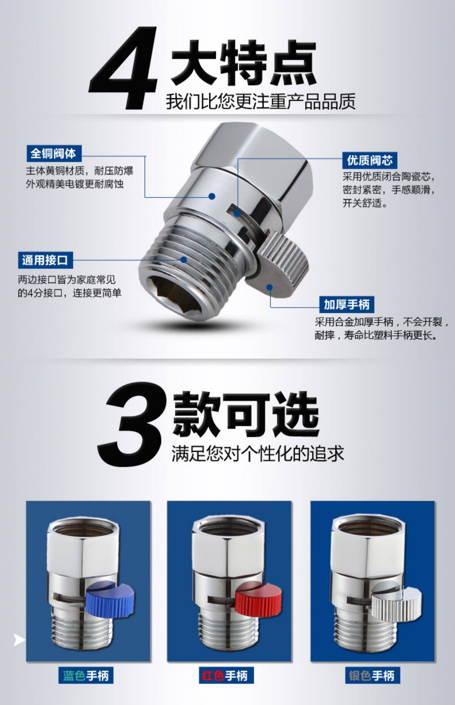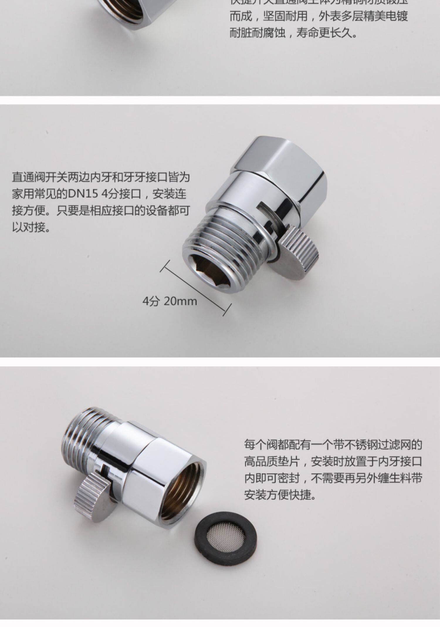 Полный угловой клапан медной проходы через клапан 4 точки потокового керамического душевого спрея.