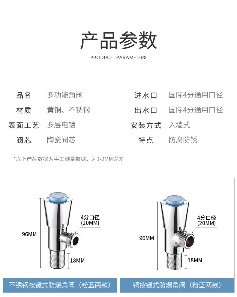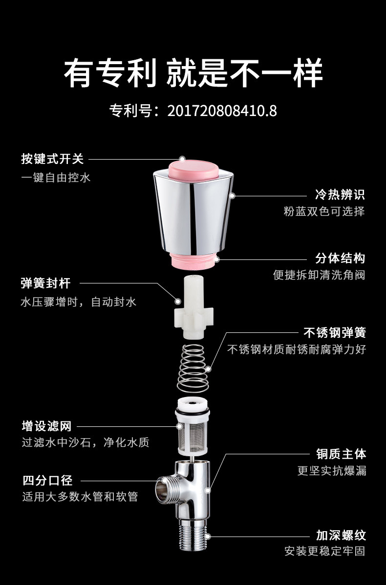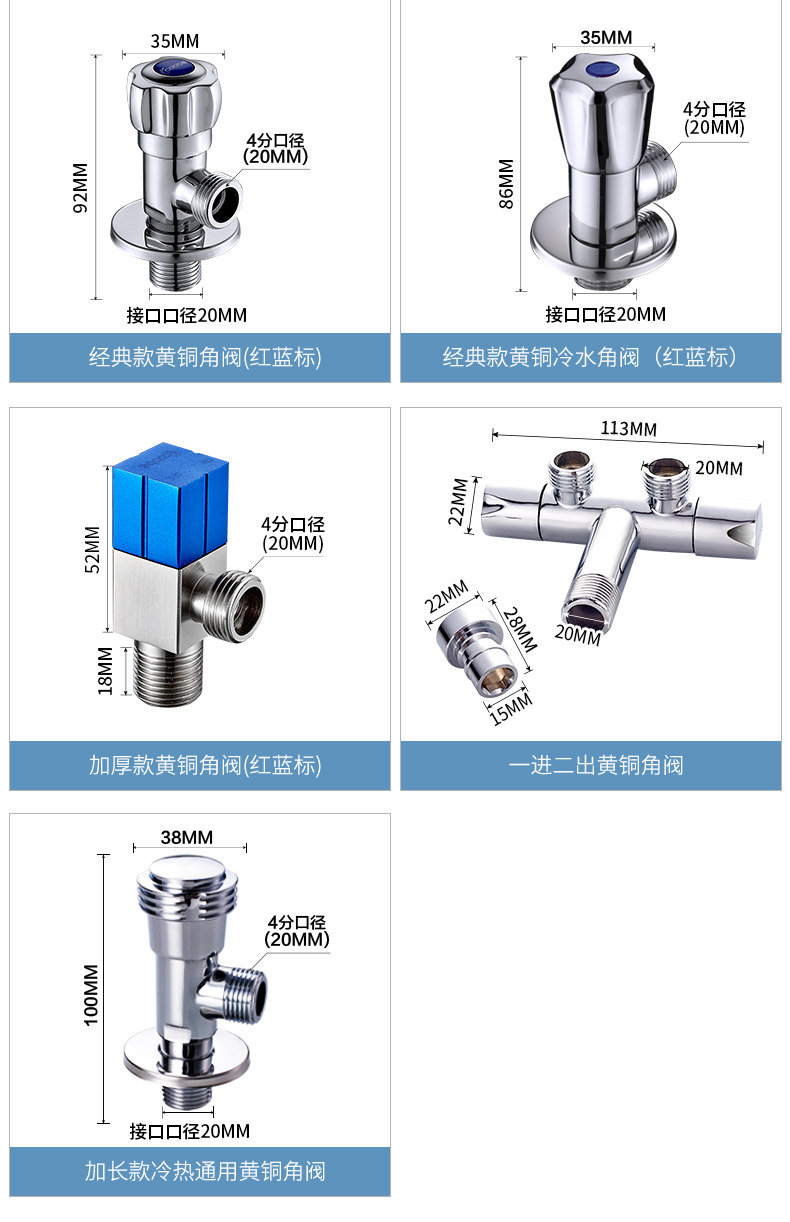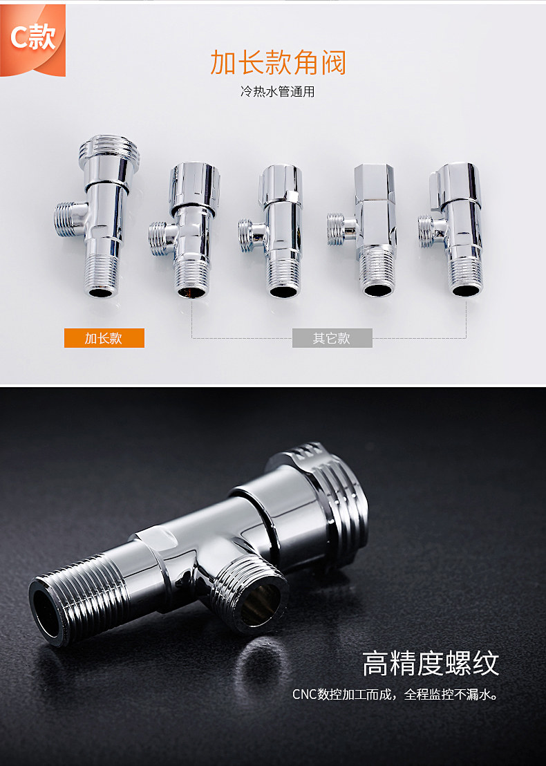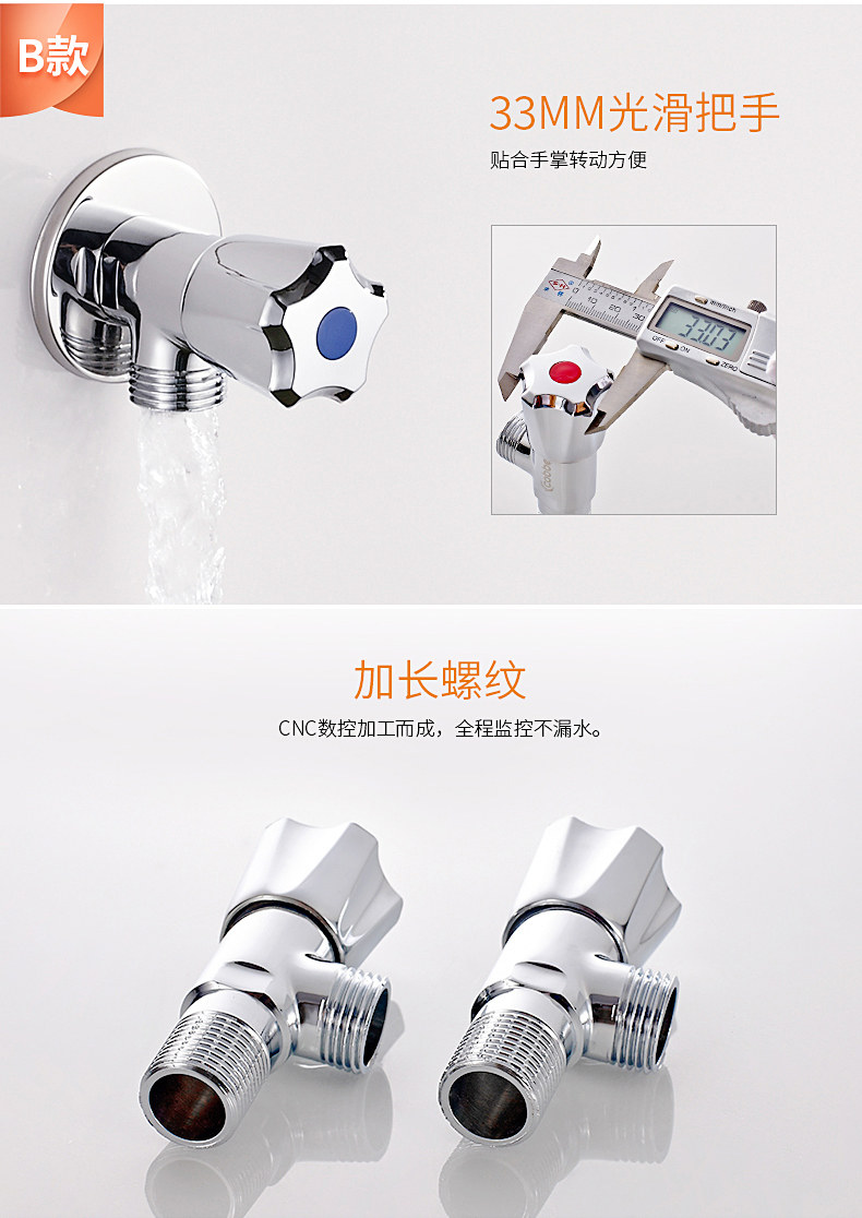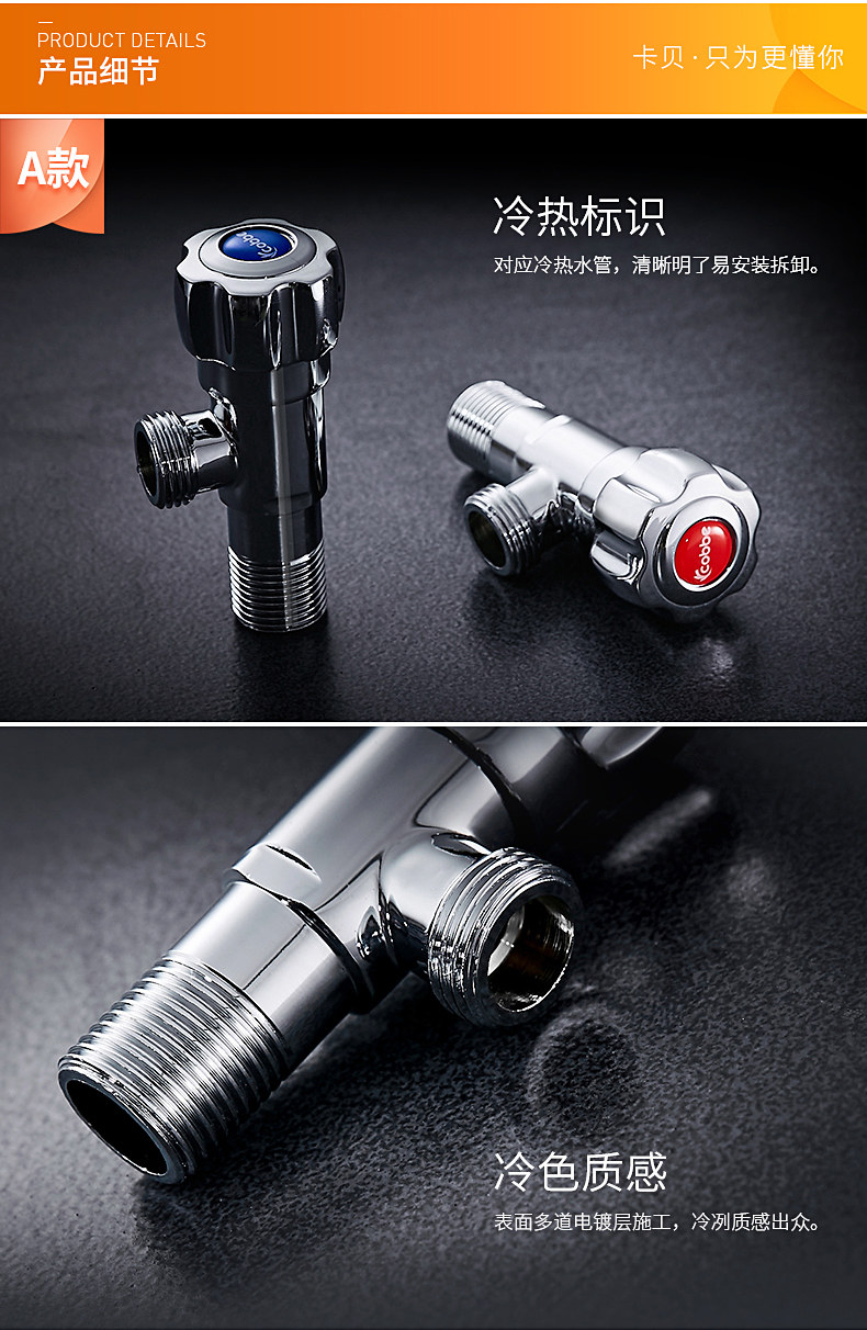 Кабе толстый треугольный клапан Клапан Рафинированный медный холодный и горячий клапан клапана 4 точки остановки водяного клапана.
