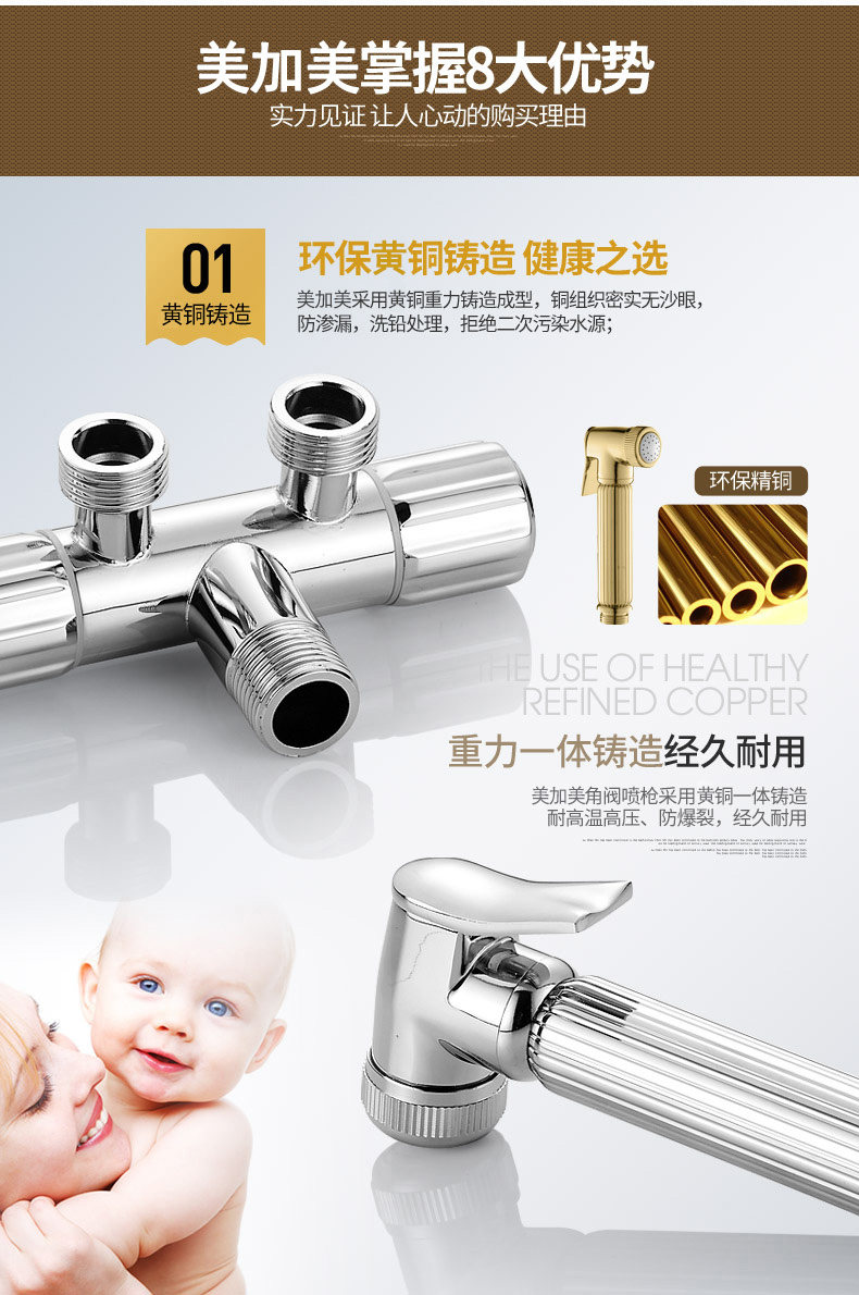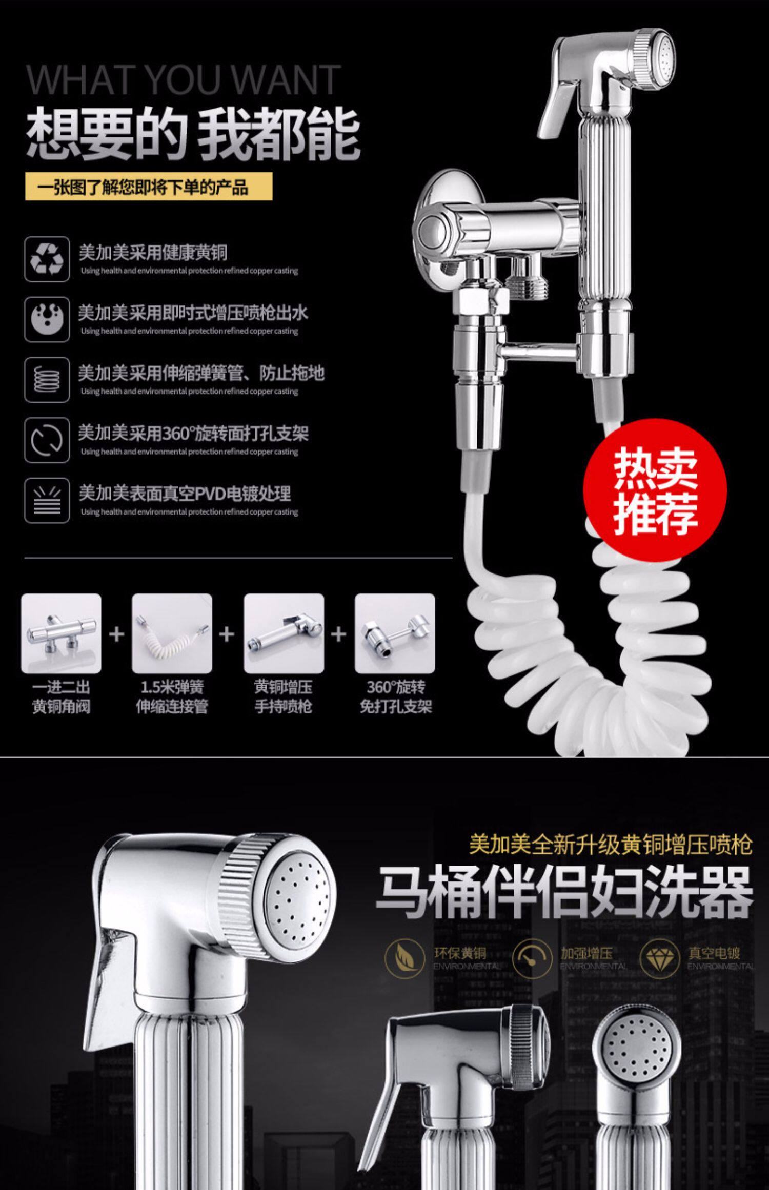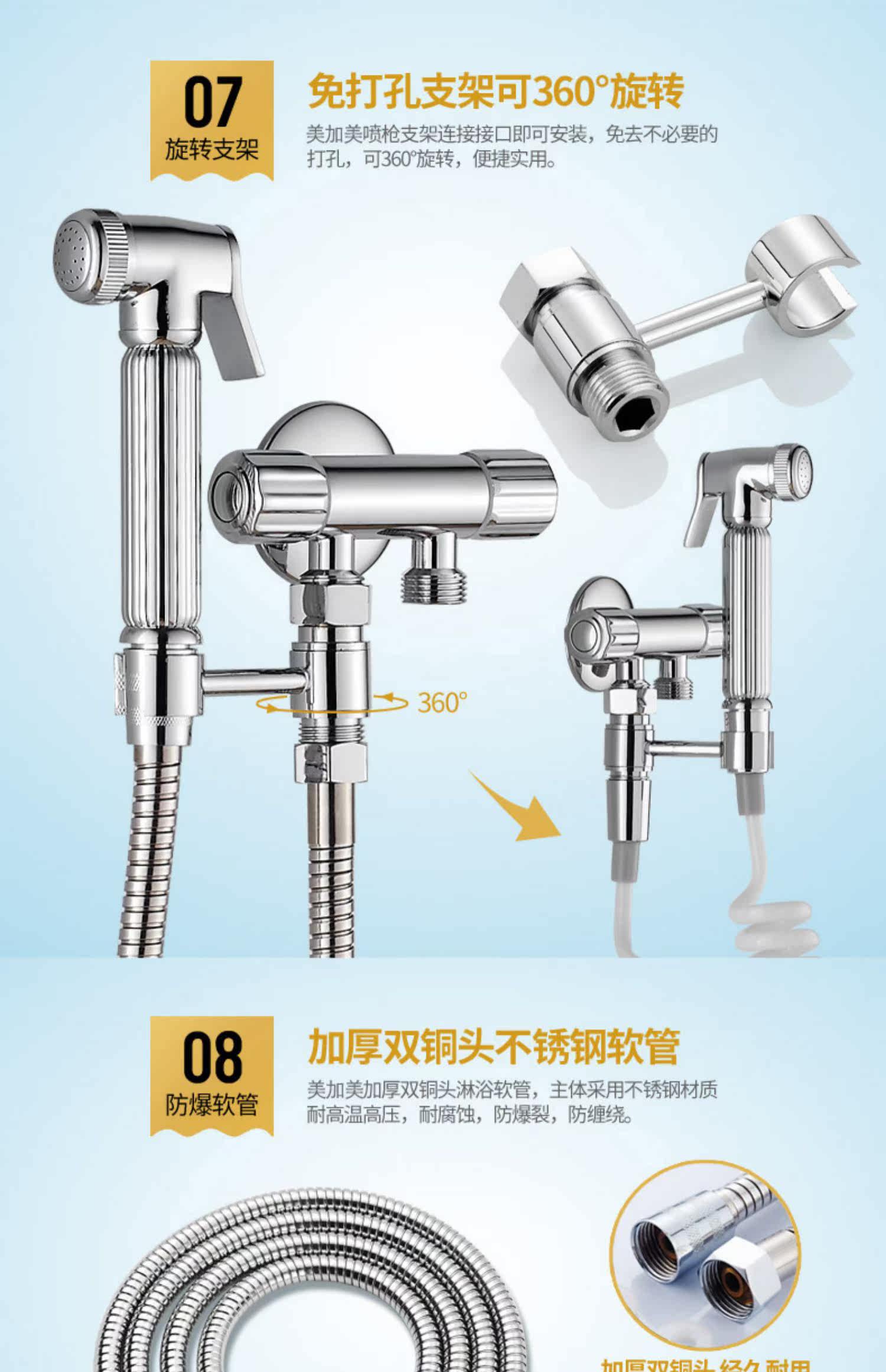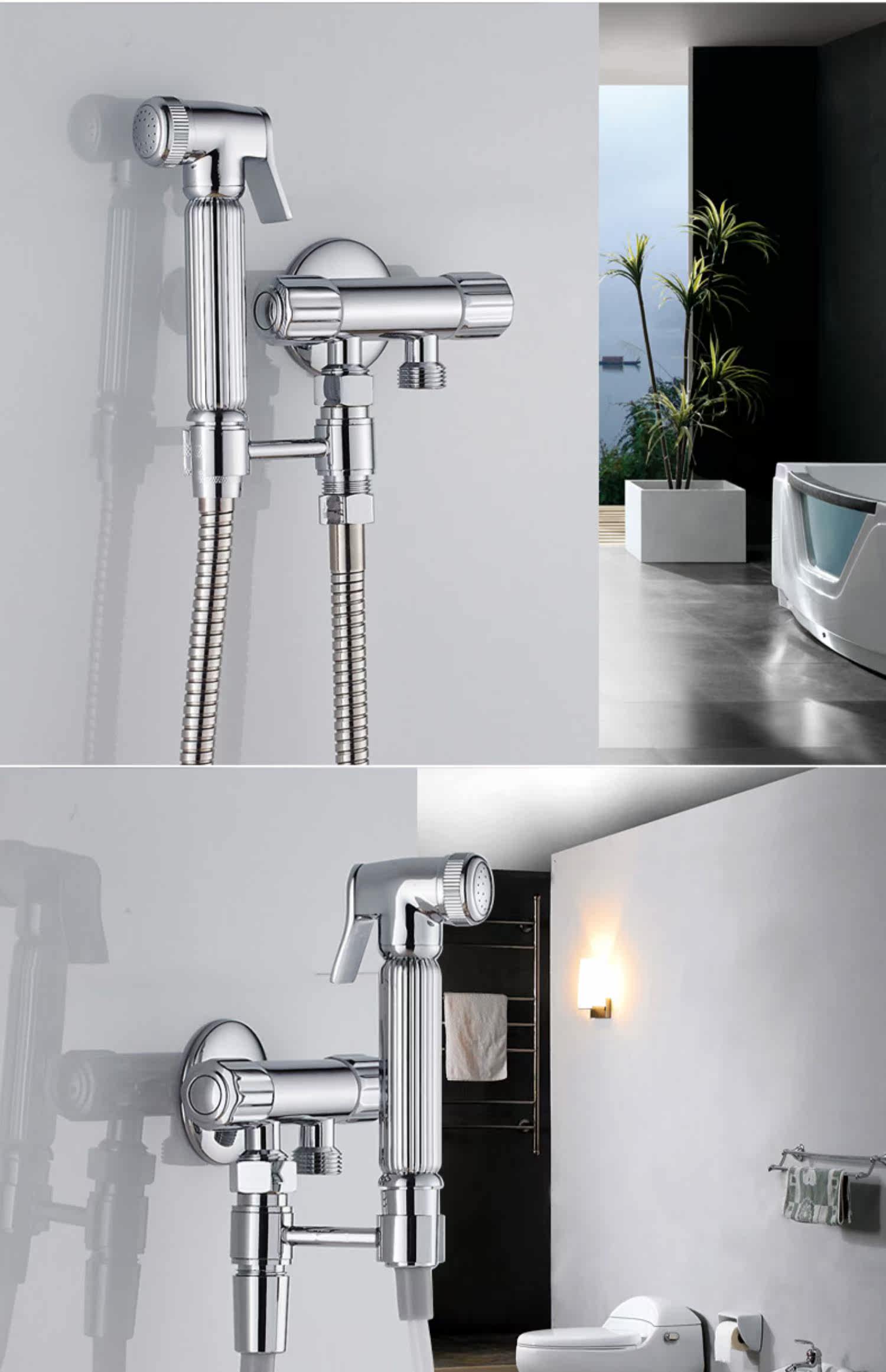 Треугольный клапанный туалетный распылительный пистолет установите все медное тело, утолщенное один из двух из двойного вращения двойного использования воды с водяным клапаном