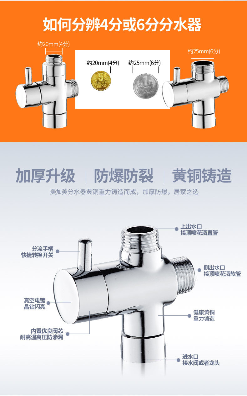 Аксессуары для душа все -бронзовые быстро -открытые водяные сплиттер с тремя соединительными соединениями один -дюймовый клапан преобразования смесителя для душа для душа