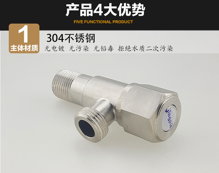 Треугольный клапан Полный медный утолщенный восьми -ручный клапан стоп -клапан Клапан Холодный водный водонагреватели Переключающие 304 угловой клапан из нержавеющей стали.