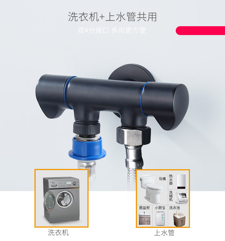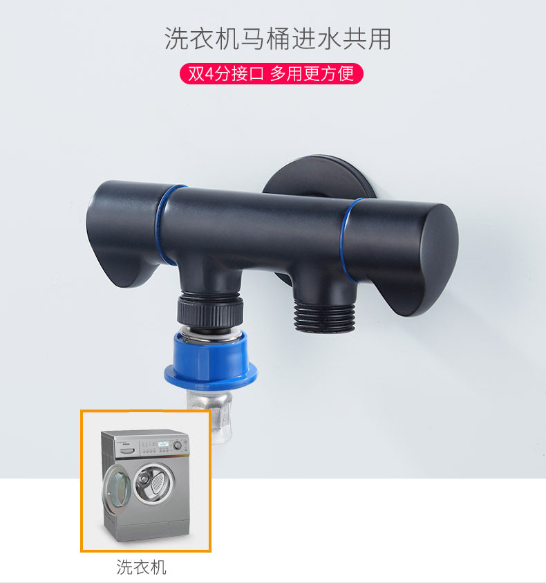 Один в ванной комнате, один холод, один холодный четырех -точка черной быстрой быстрого открывающейся стиральной машины туалетный клапан Угловой Клапан Остановка воды Стоп клапан
