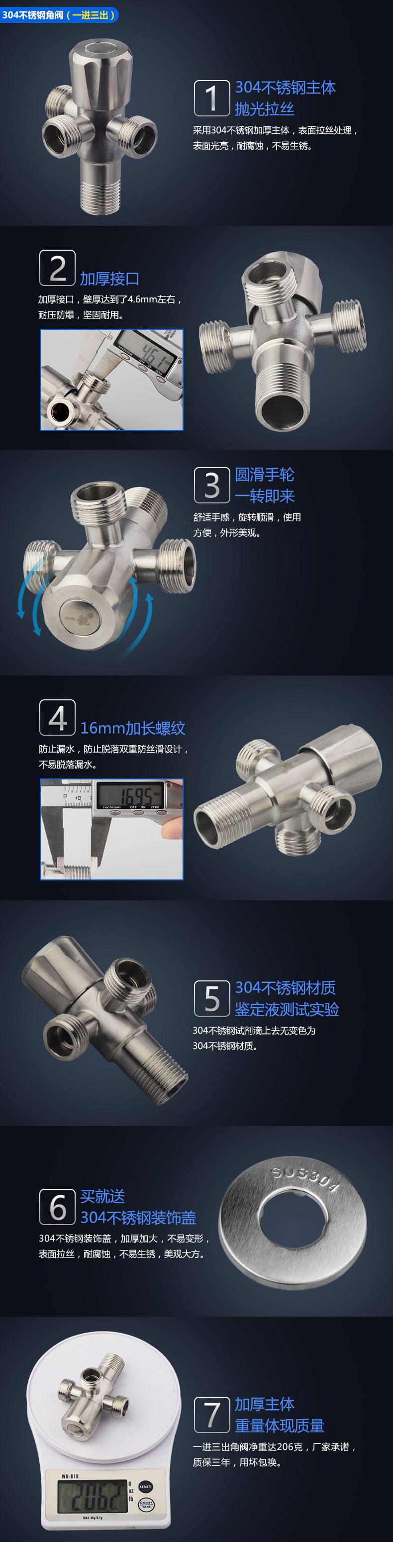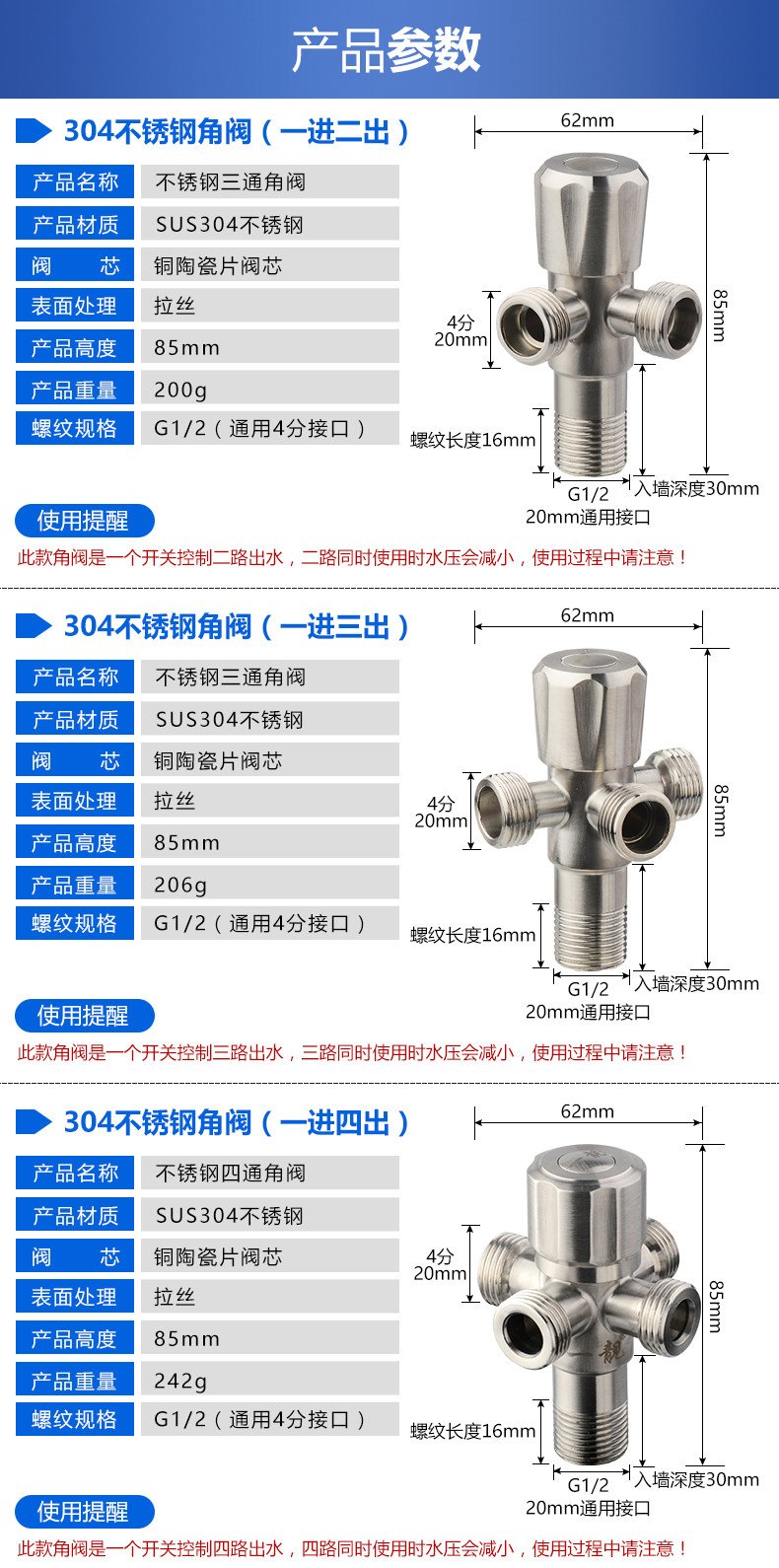 Четырехнологический угловой клапан с двойным использованием 304 из нержавеющей стали. Одно кипящая вода разветвитель с одной третьей, четыре розетки и длинные выключатели холодной и холодной воды