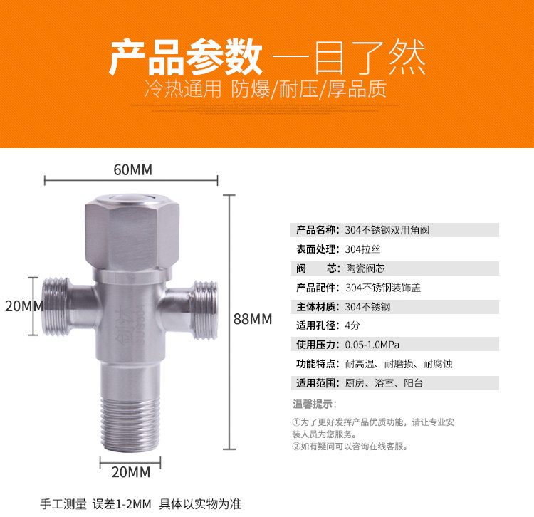 304 Клапан из нержавеющей стали в двух точках, 4 точках, холодный и холодный, сгущающий взрыв -Проклятный клапан двойной водный клапан Универсальный стоп -стоп.