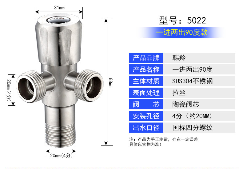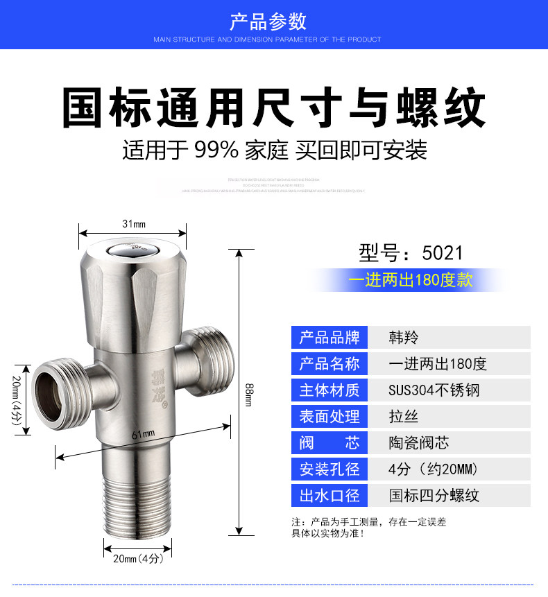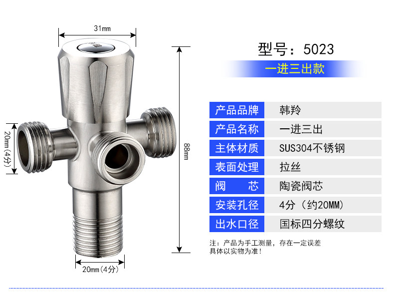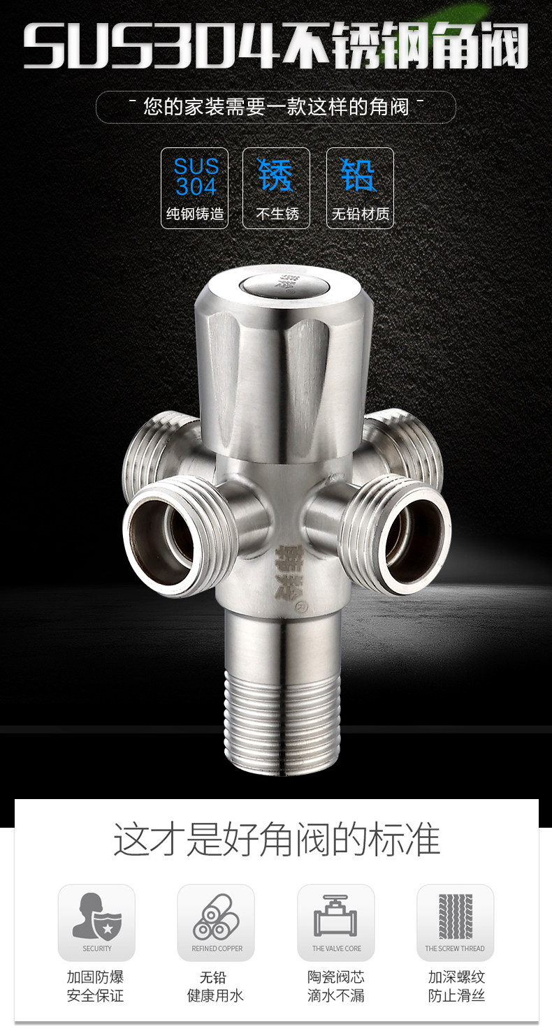 304 Треугольник из нержавеющей стали Мебель для клапана горячая и горячий клапан с горячим водным клапаном один в один и два из четырех трансписного стоп -клапана.