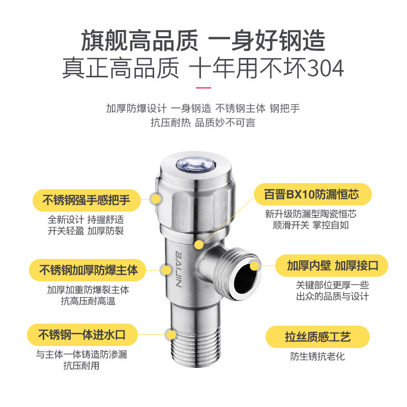 304 Аксессуары для ванной комнаты из нержавеющей стали Один из двух из треугольника клапана, одна точка, многофункциональный домохозяйство с горячей и холодной водой.