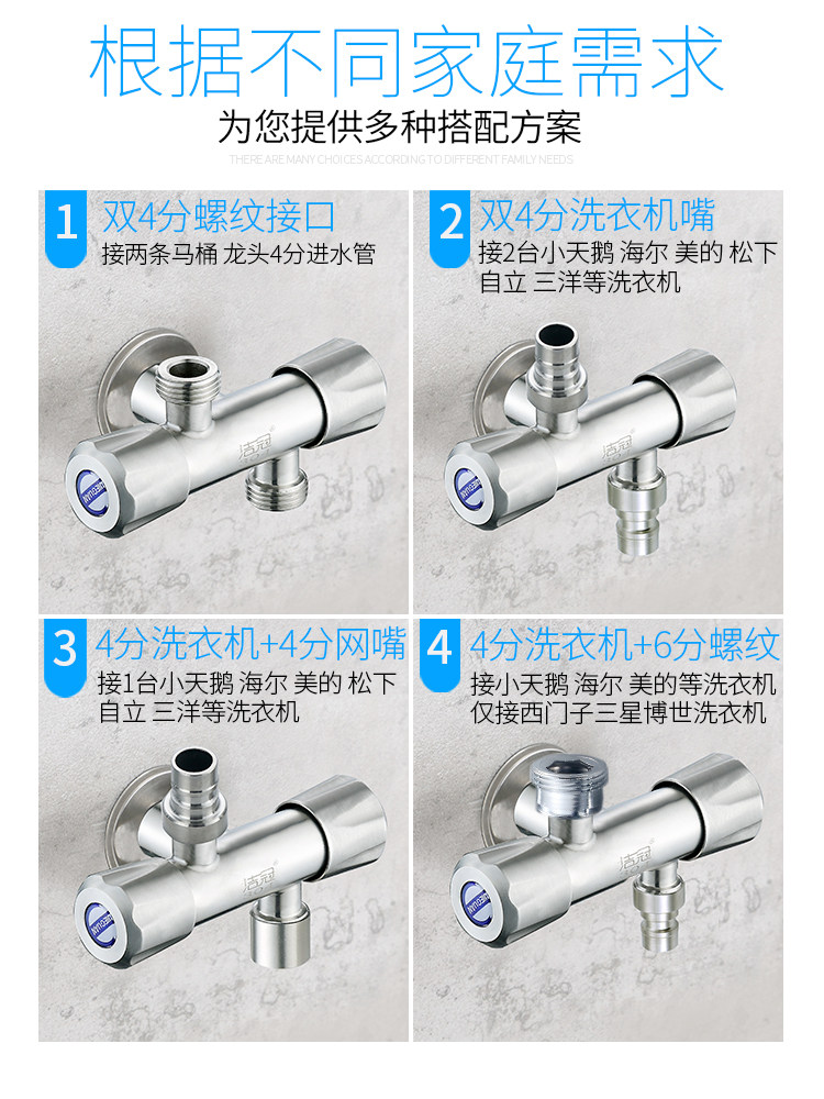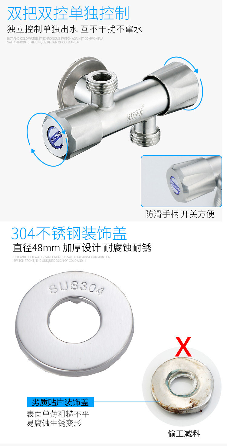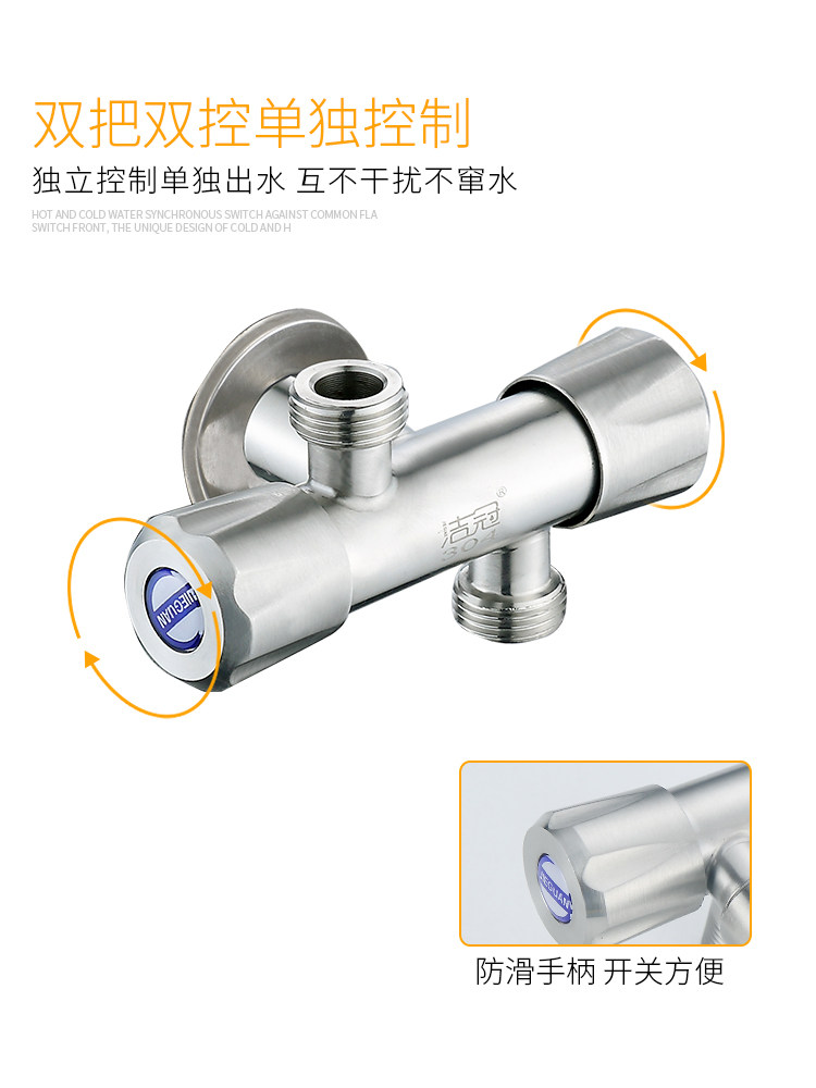 304 Трехэтажный угловой клапан Один из двух розетков и двойные переключатели с двойными водяными клапанами, одна точка, две двойные домашние туалетные водные боковые линии