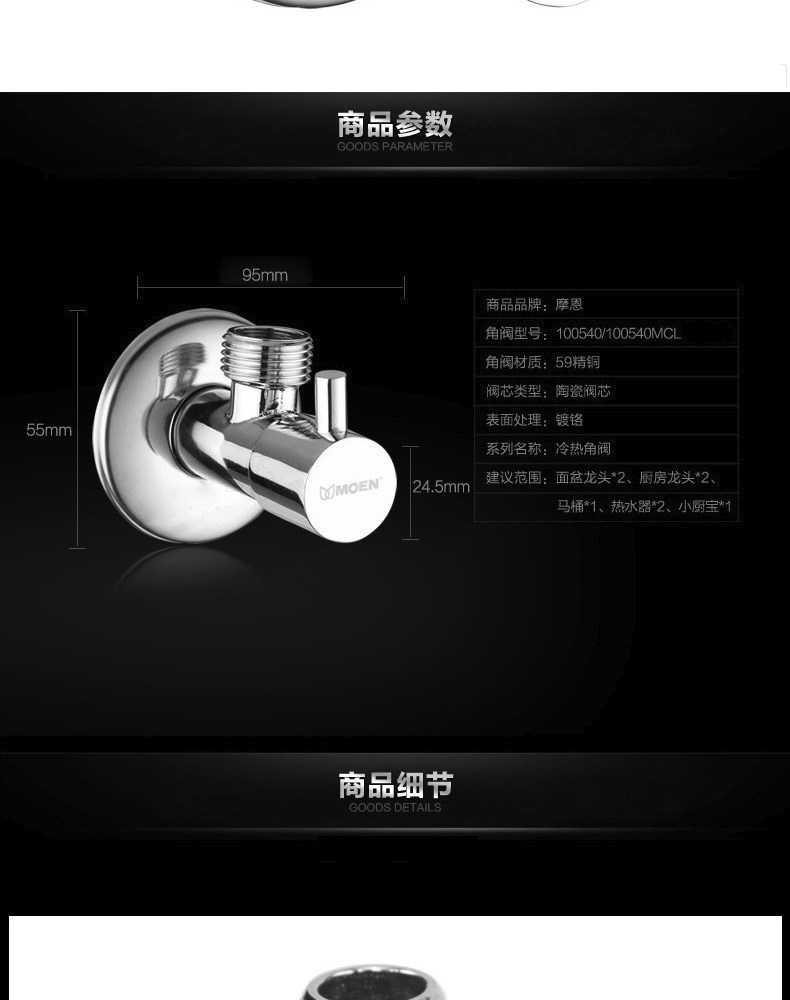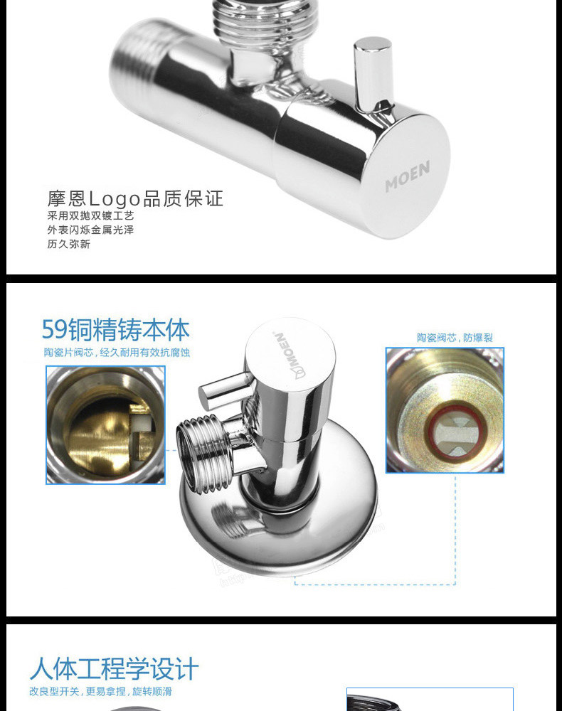Моен Quan Медный холодный и керамический клапан сердечник с высокой температурой, устойчивый к водонагревателю Специальный треугольный клапан