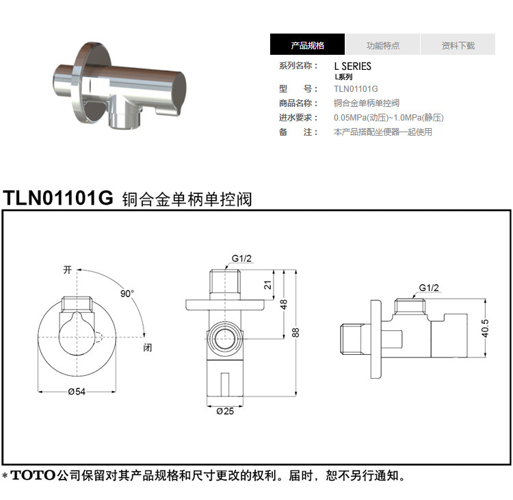 TOTO Треугольный клапан TLN01101 Нажмите отскок от водонагревателя DN023 Туалетный бассейн горячий и холодный водный клапан (11)