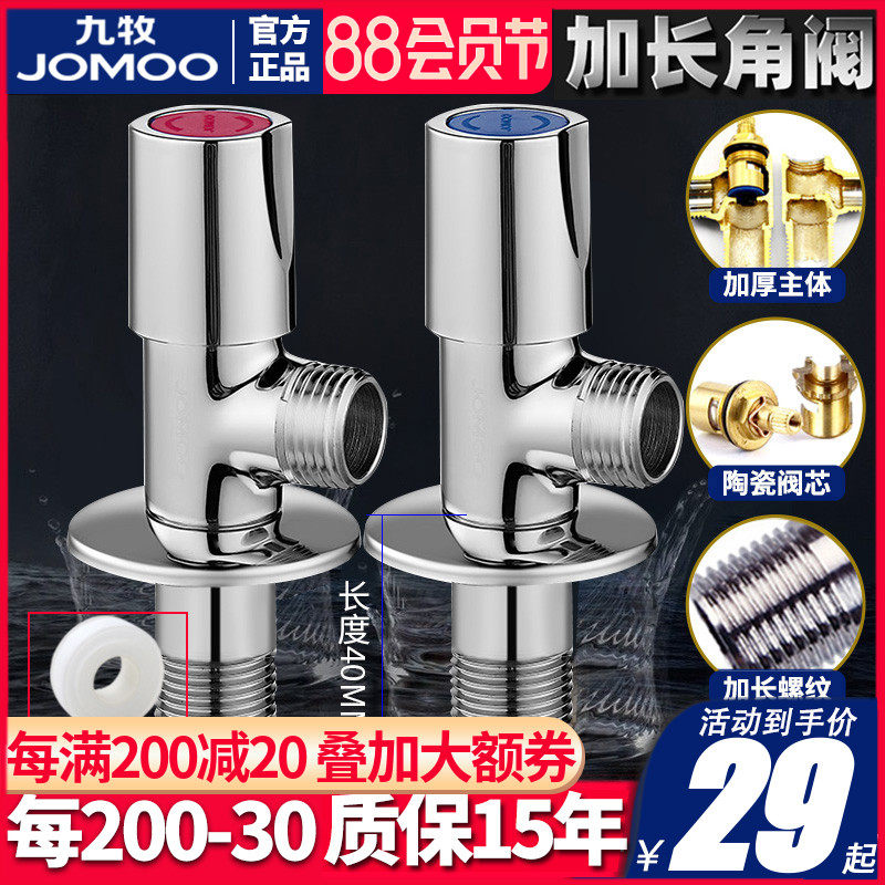 Jiu Mu расширенный угловой клапан Полный медь в стену, холодная и горячая вода Универсальный водонагреватель туалет большой поток, чистый медный треугольный клапан