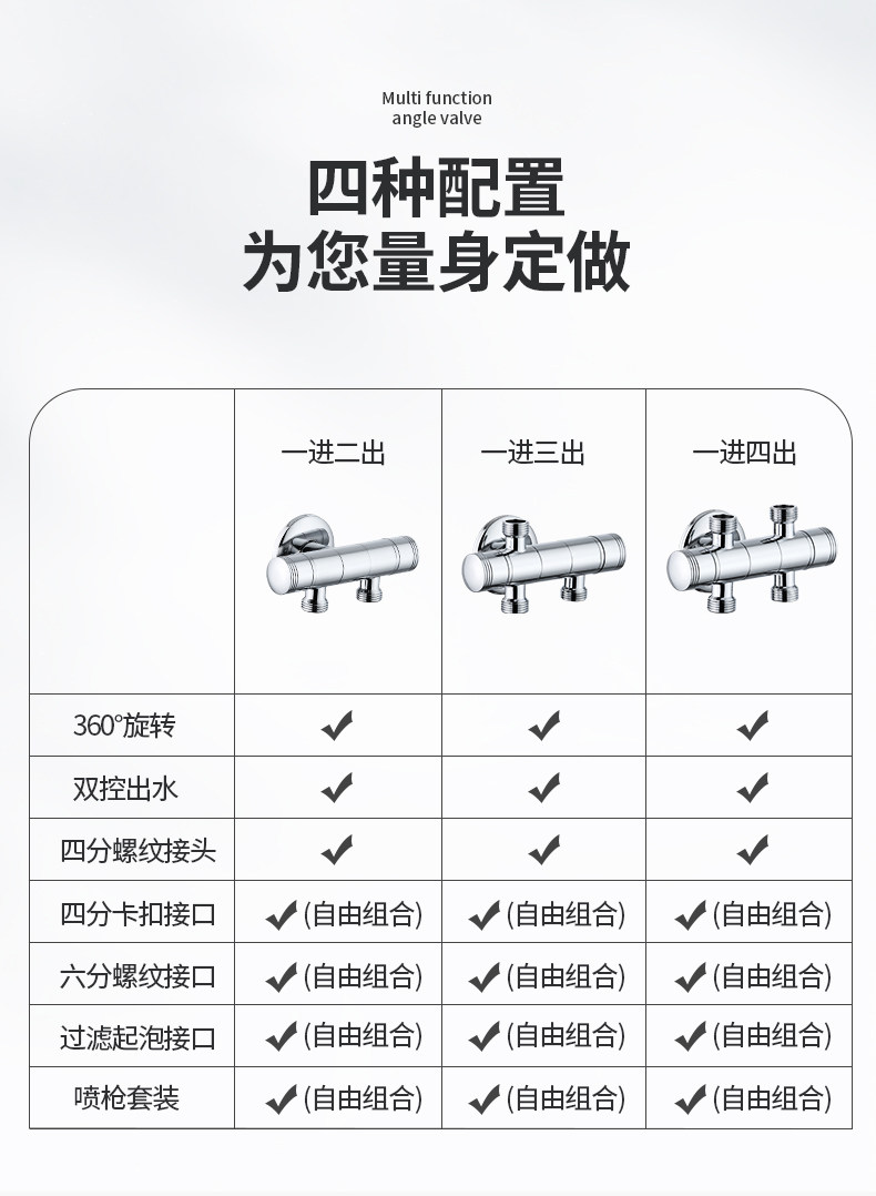 | Цвет: | Один вход, два выхода, резьба 4 точки + резьба 4 точки., Один вход, два выхода, пряжка 4 точки + нить 4 точки., Один вход, два выхода, резьба 6 точек + резьба 4 точки., Один вход, два выхода, фильтрованная кипящая вода + резьба на 4 минуты., Пистолет-распылитель с одной входной и двумя кнопками + 4-точечная резьба., Один входной и два выдвижных пистолета-распылителя + 4-точечная резьба, Один вход, три выхода, резьба на 4 точки., Пряжка 4 очка + нить 6 очка + нить 4 очка, 4-точечная пряжка + 4-точечная пряжка + 4-точечная нить, 4-точечная пряжка + пузырьковая вода + 4-точечная резьба, Кнопочный пистолет-распылитель + 2 4-точечных резьбовых соединения, Пистолет-распылитель со скользящим поворотом + 2 4-точечных резьбовых соединения, Один вход, четыре выхода, 4-точечная резьба, 4-точечная пряжка + вспененный интерфейс + две 4-точечные нити, 4-точечная пряжка + 6-точечная резьба + две 4-точечные нити, 2 4-точечные пряжки + 2 4-точечные нити., 6-точечная резьба + вспененный интерфейс + две 4-точечные резьбы, Кнопочный пистолет-распылитель + интерфейсы с резьбой 3 четверти, Пистолет-распылитель со скользящим поворотом + интерфейсы с резьбой 3 четверти |