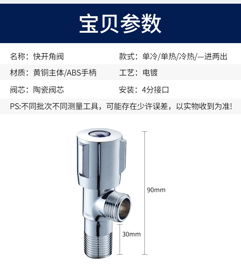 Угловой клапан латунный холодный и горячий водный клапан переключатель водонагревателя Дом остановки водяной остановки Клапан восемь -фийер клапан 304 Треугольник из нержавеющей стали.