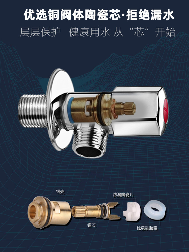 Jiu Mu's All -Copper Angle Clap Hot and Cold Water Gas Watere Averater Counet Citchen Special Большой треугольник клапана набор клапанов