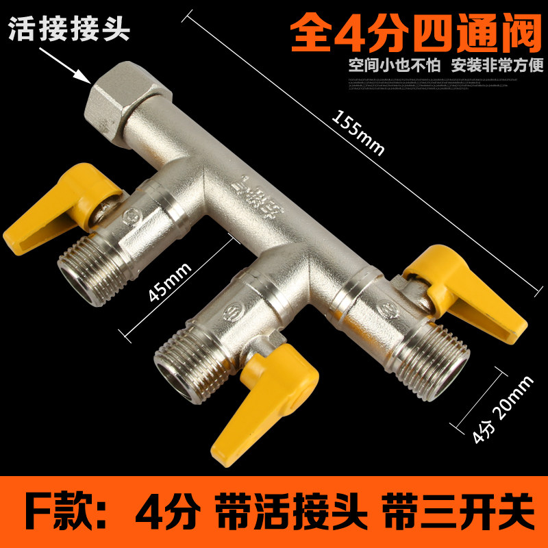 Каждый два из двух из двух точечных углов клапан 4 точки, трехсторонний туалет из латунных водяных клапанов от 1 до 2 до 2