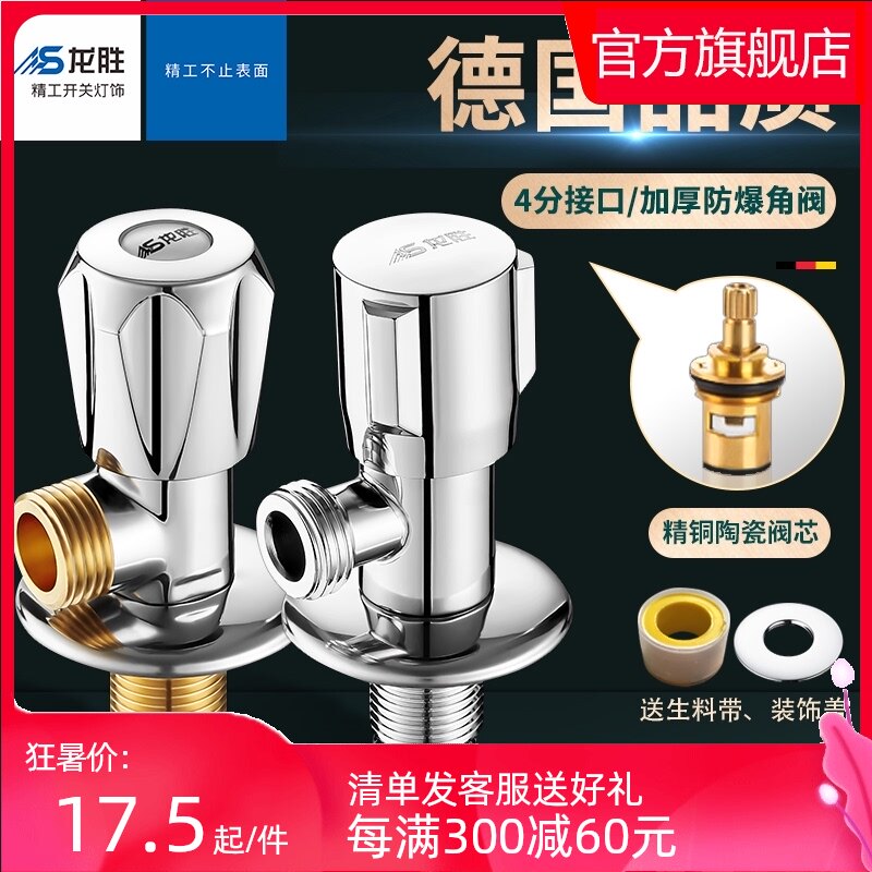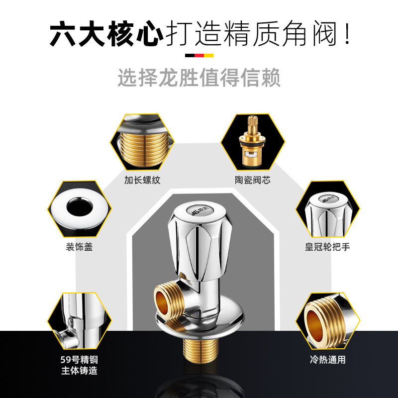 Longsheng Angle Clap All -Bronze Треугольный клапан Домохозяйственной клапан Клапан Угловой Клапан Клапан Клапан Клапан Холодный и холодный универсальный 4 точки остановка воды 304 из нержавеющей стали из нержавеющей стали