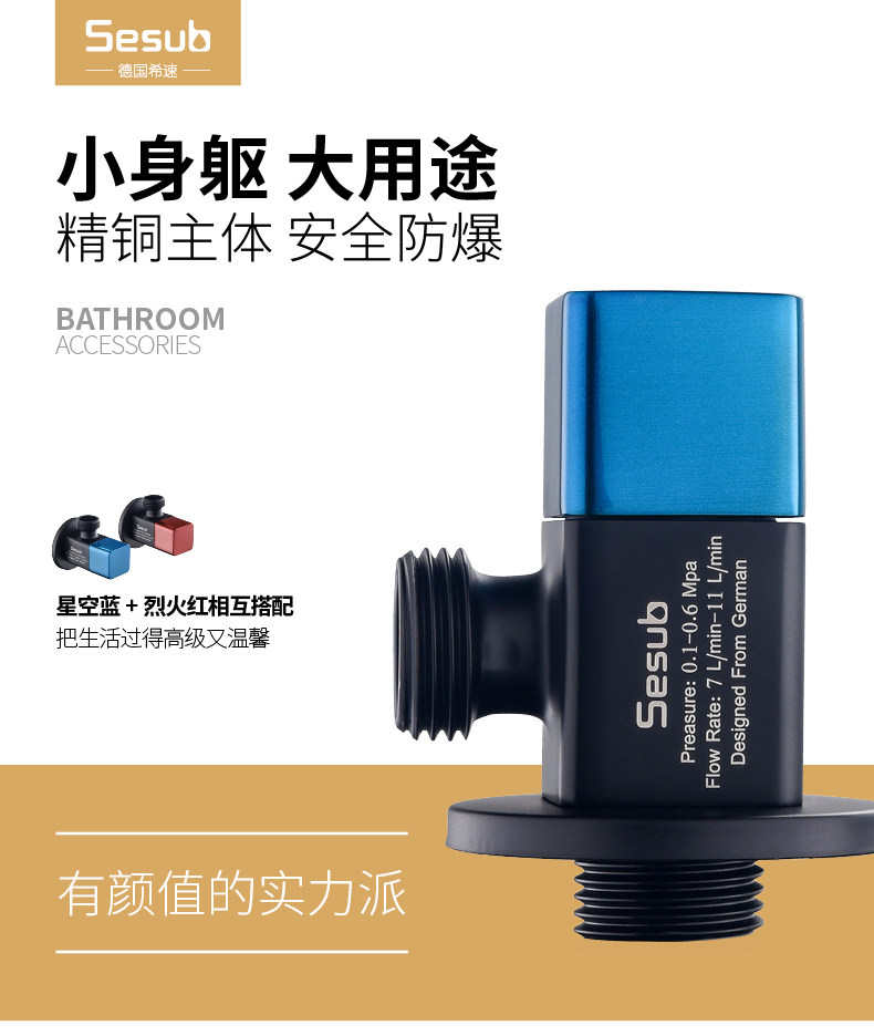 Немецкий хегун -клапан Полный медный утолщенный остановка возвращаемого клапана, чтобы предотвратить холодный и холодный туалетный водонагреватель черный красный и синий клапан клапана с синим треугольником
