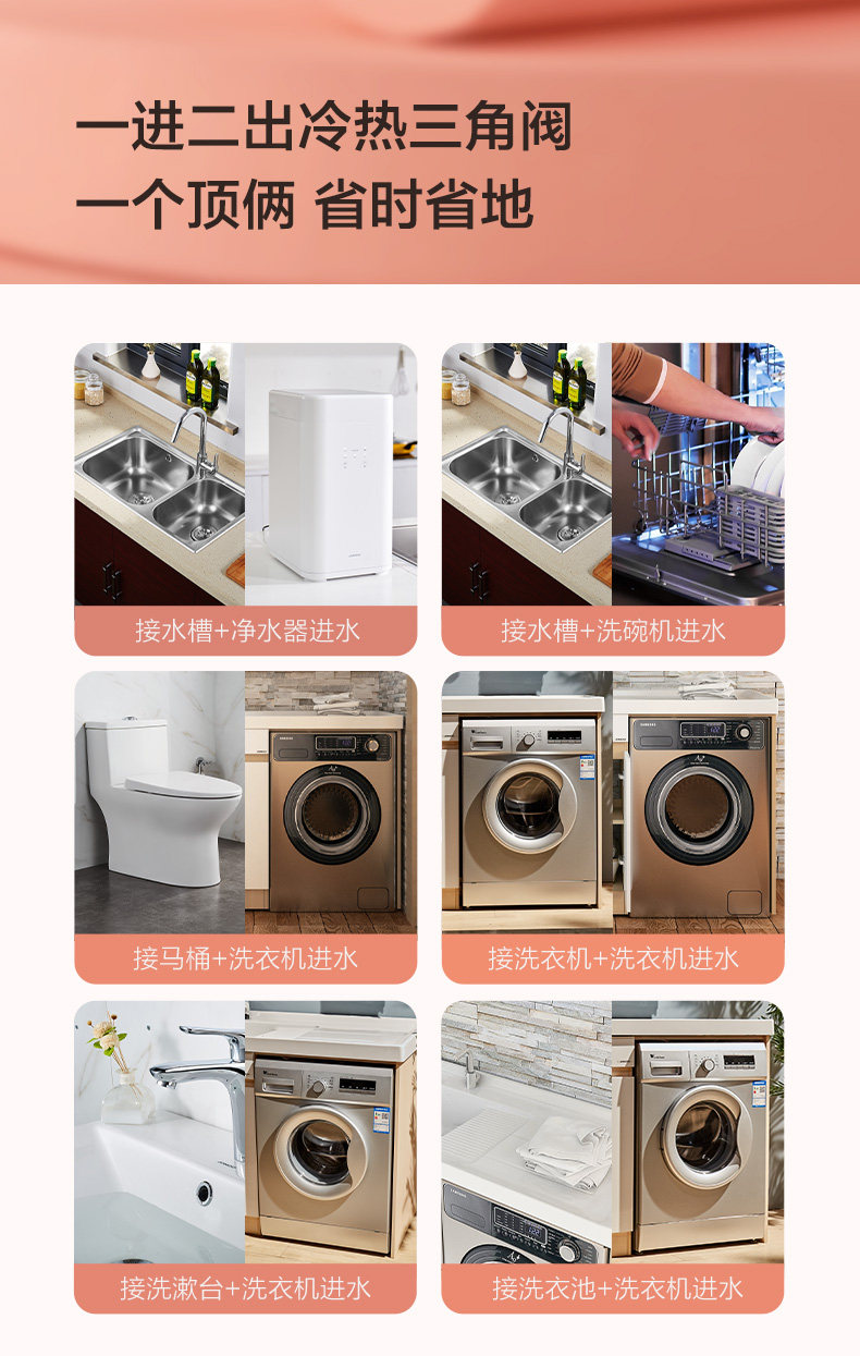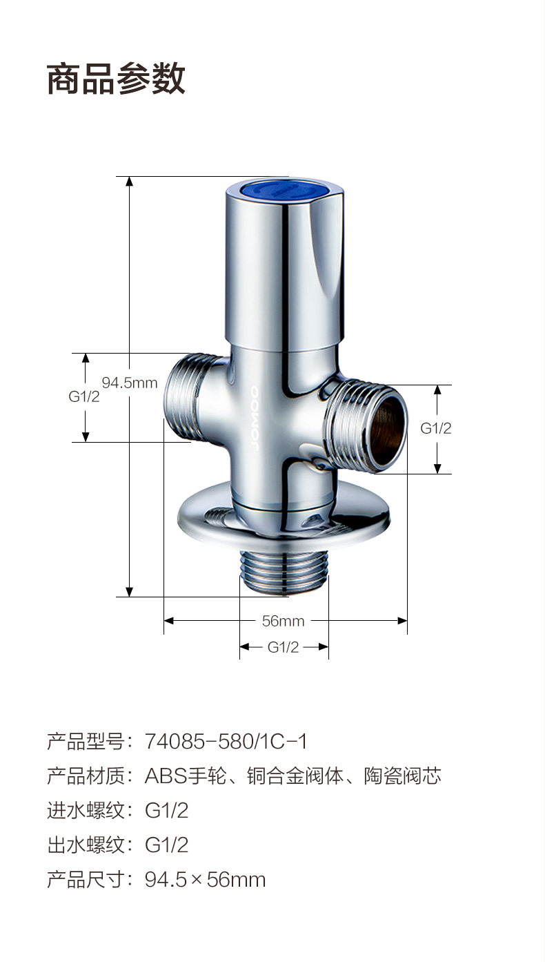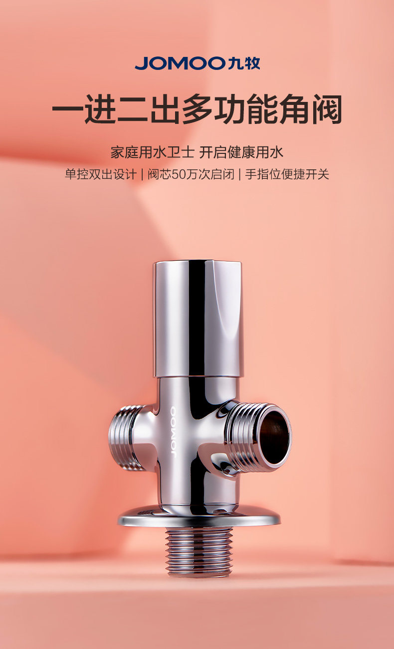 Jomoo Jiu Mu Sanlong угловой угловой клапан один из двух из треугольника клапана -все -коппер, горячий и холодный двойной выпускной клапан переключатель 74085