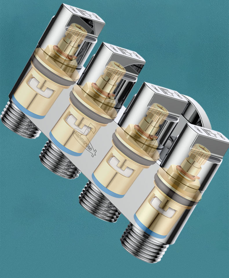 Один и четыре из латунных угловых клапанов три и четыре выключения и пять выключенных многократных клапанов.
