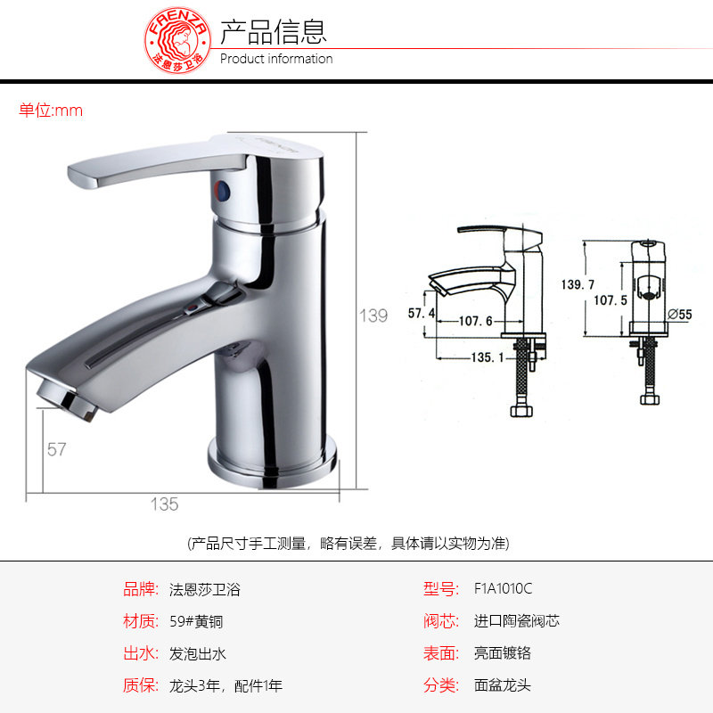 Кран Фарнша, горячая и холодная вода одно отверстие для водного смесителя все ванная ванная комната для ванной комнаты в ванной комнате F1A1010C