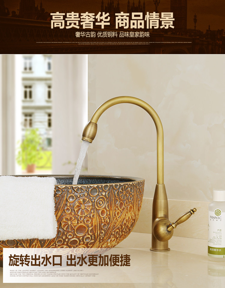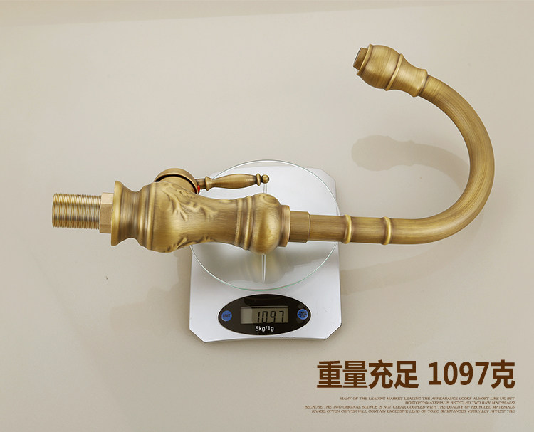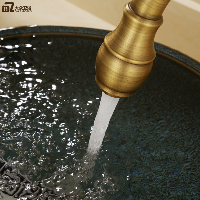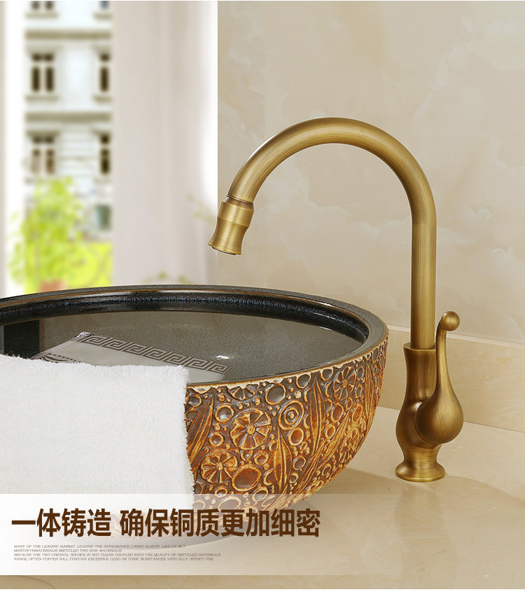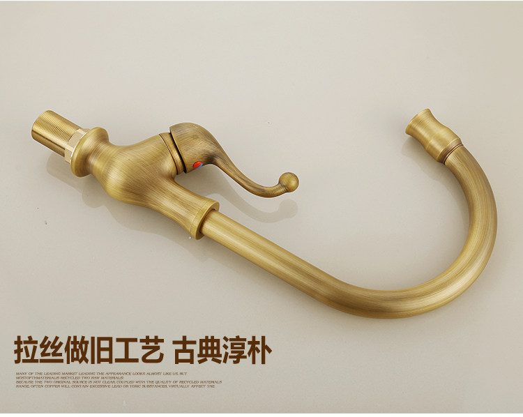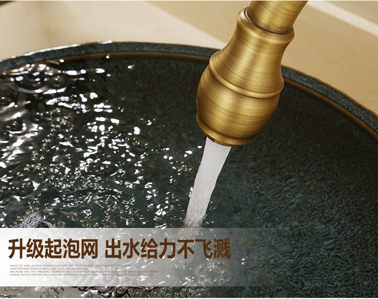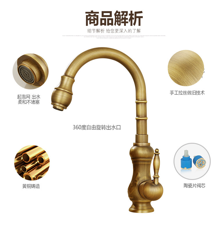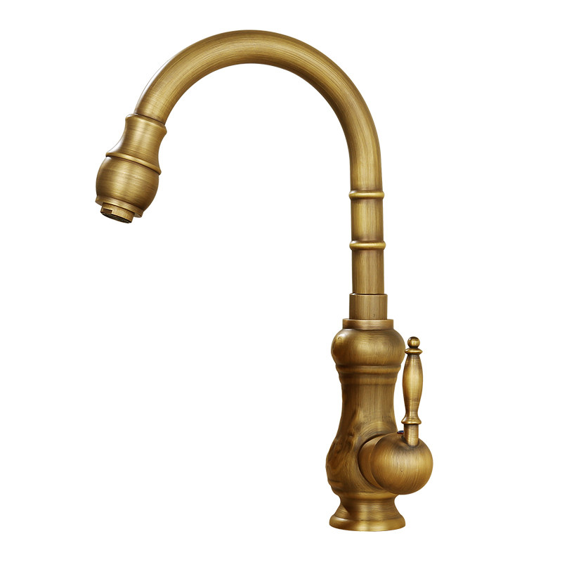 Европейский антикварный кухонный кран Полный медный ретро -ретро -и холодный бассейн ретро