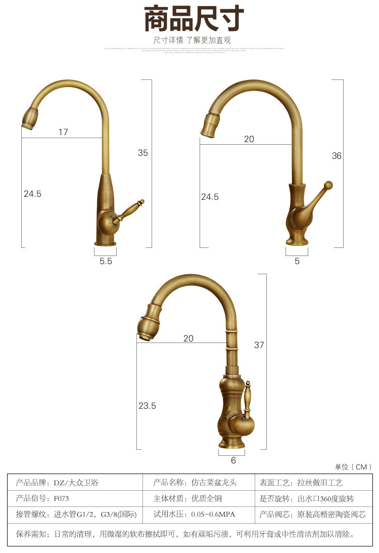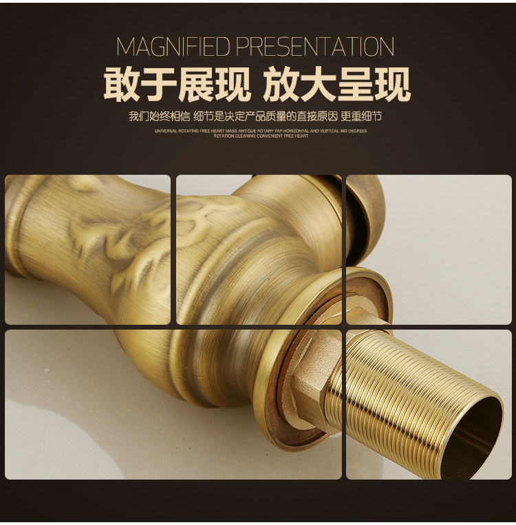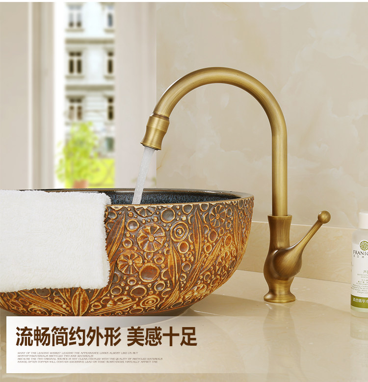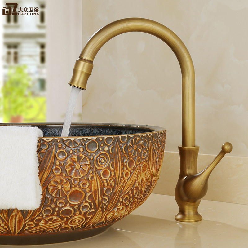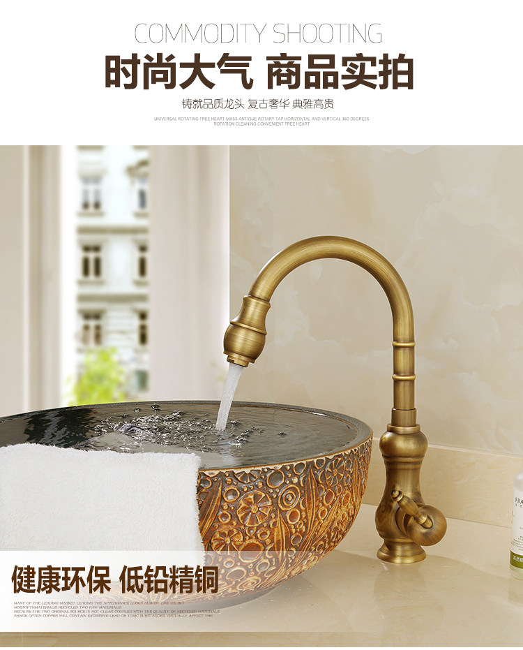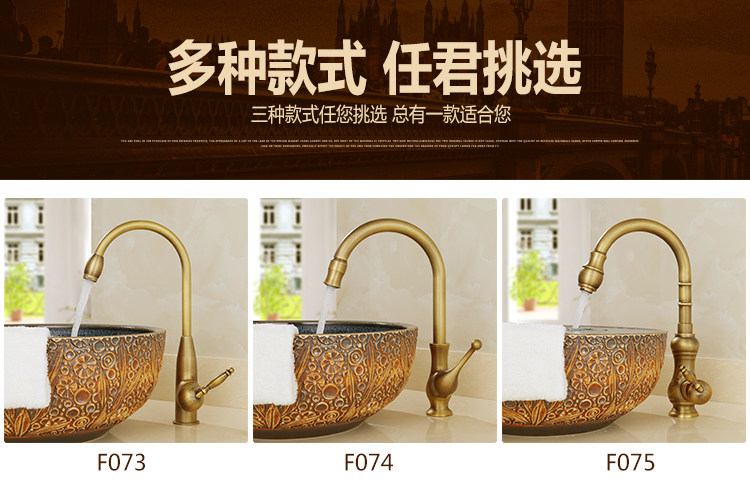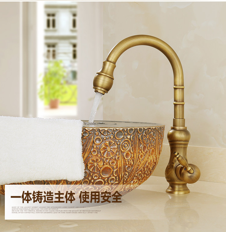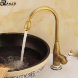 Европейский антикварный кухонный кран Полный медный ретро -ретро -и холодный бассейн ретро