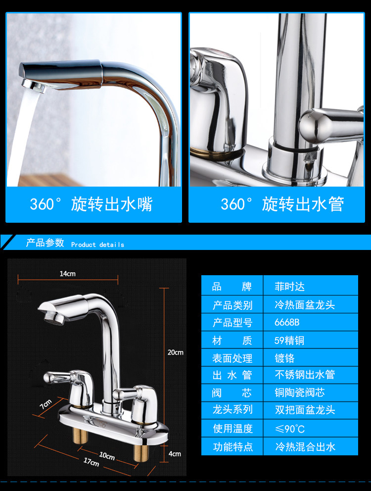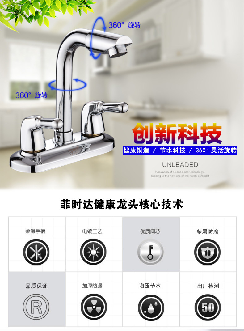 菲时达 Смеситель с двойным отверстием, горячий и холодный бассейн, бассейн медный клапан ванная комната, ванная комната для ванной комнаты