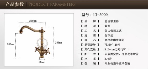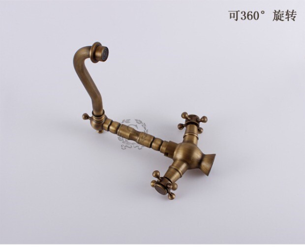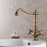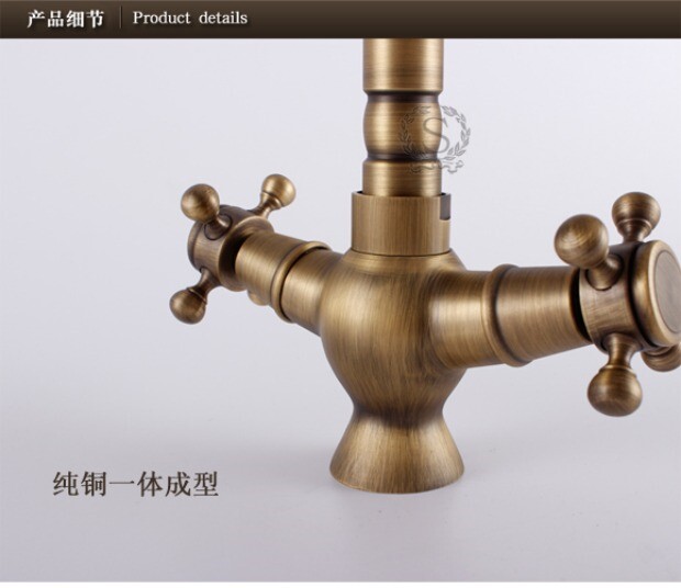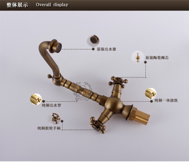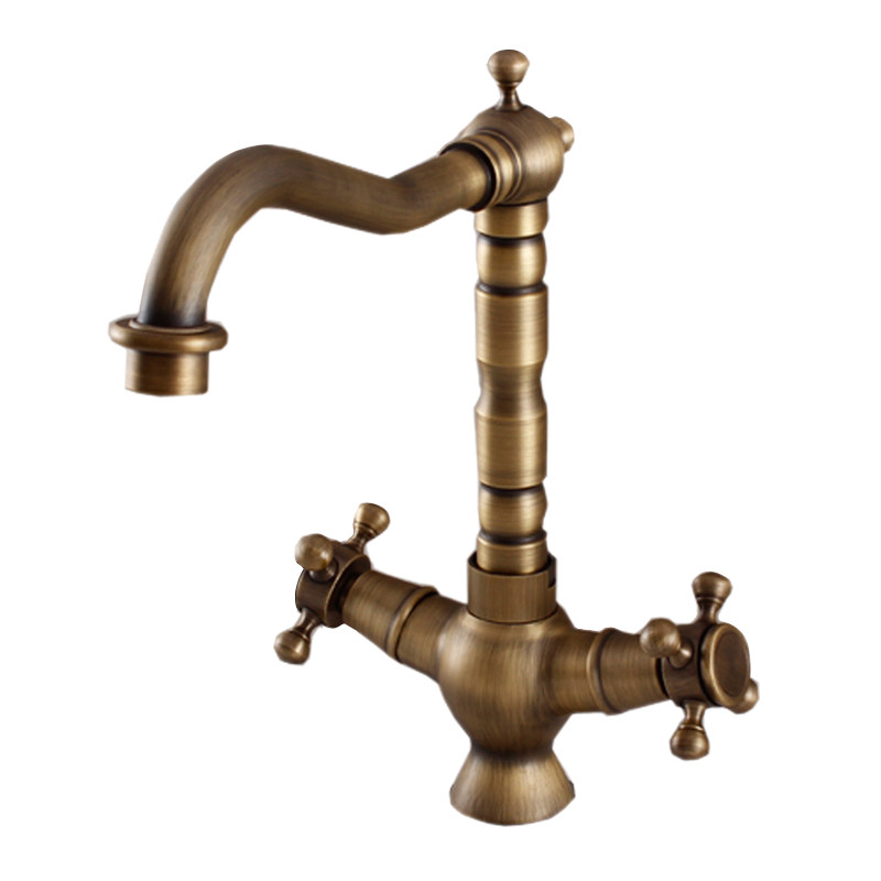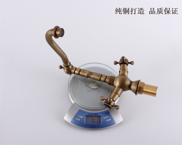 Европейский ретро антикварный полностью медный латунный умывальник, смеситель для горячей и холодной воды из чистой меди с двойной ручкой и одним отверстием, вращающийся, бесплатная доставка