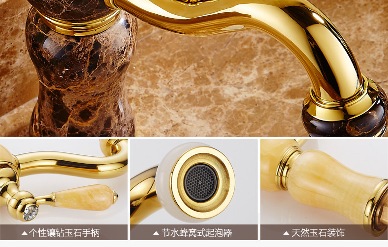 Европейское золото -все -бронзовая нефритовая вода для водных водных драконов платформ под бассейном антикварного холодного и горячего золота с мраморным шариком