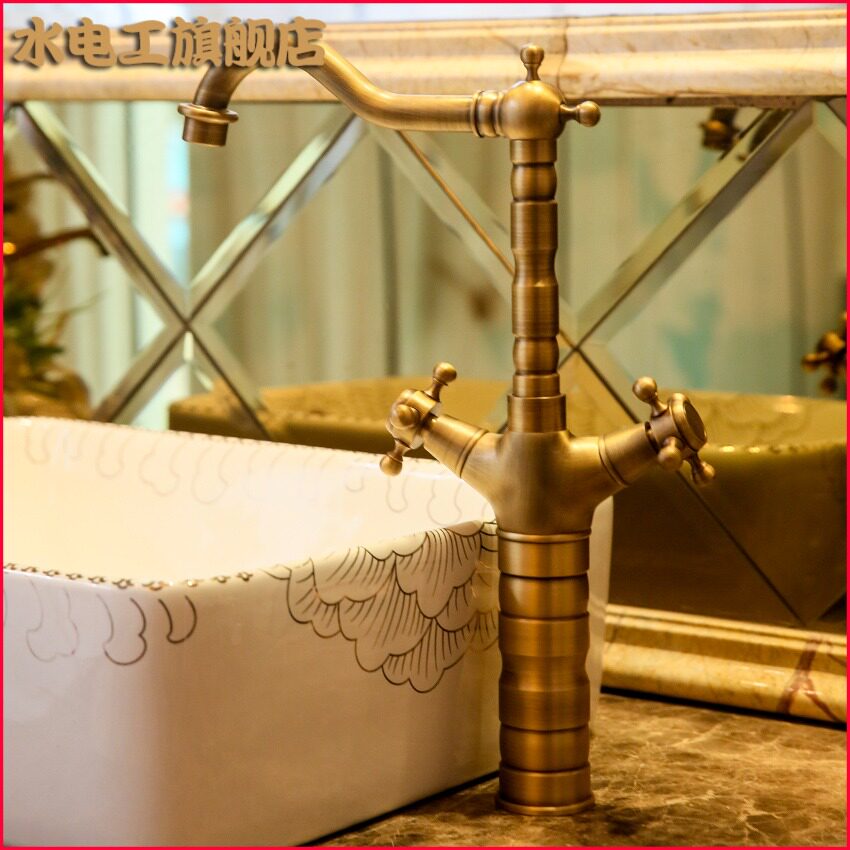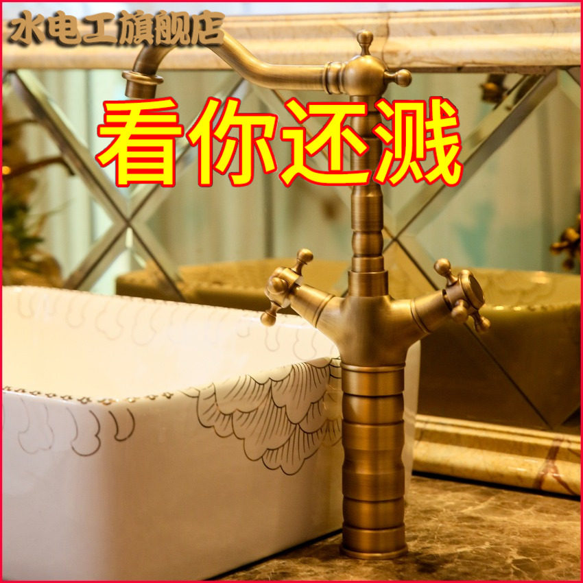 水电工 Все медное европейское антикварное кран, горячий и холодный ретро -двойной таз