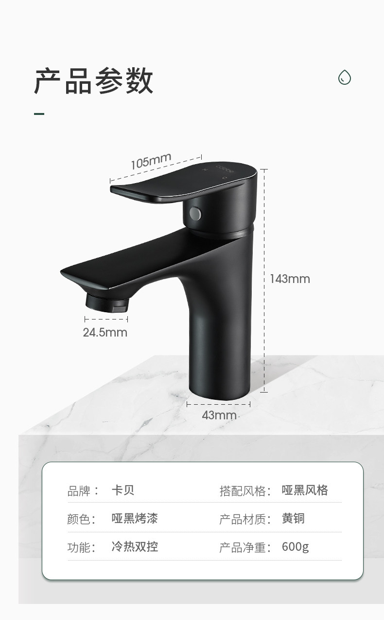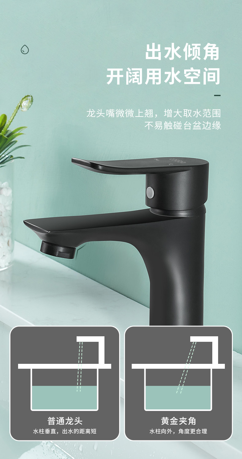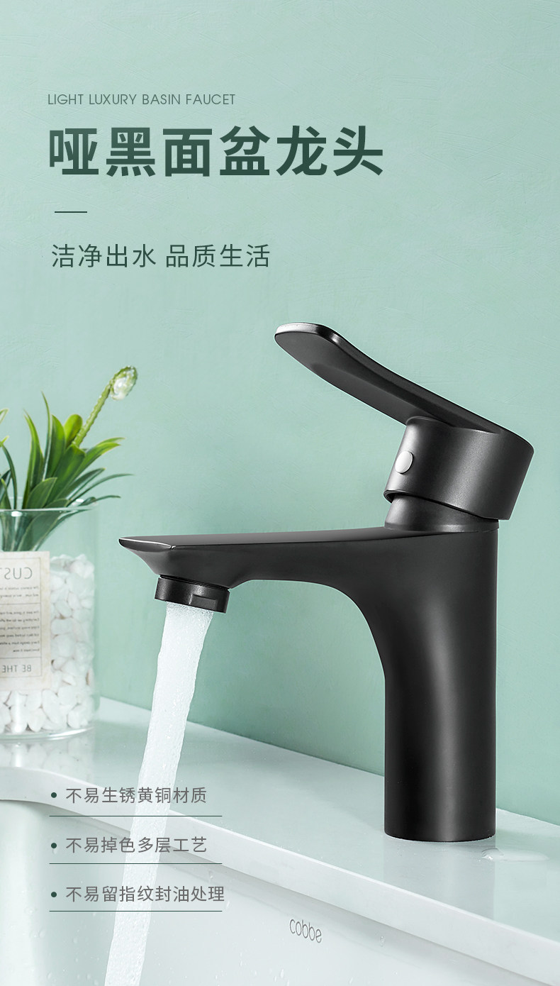 Carba Black Washbasin Water Faucet, вода, охлаждение, горячий и холодный тяга