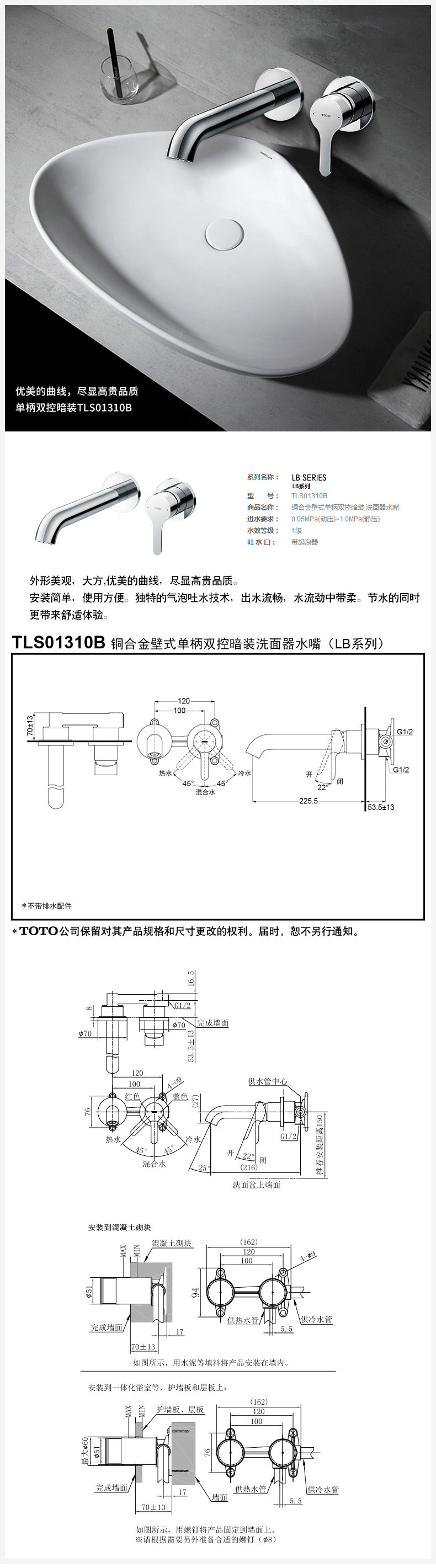 TOTO Кэнд Кэнд Гран Похороненная стена в стиле горячей и холодной воды TLS01310B Секретно отбрасывает ксамсбазин
