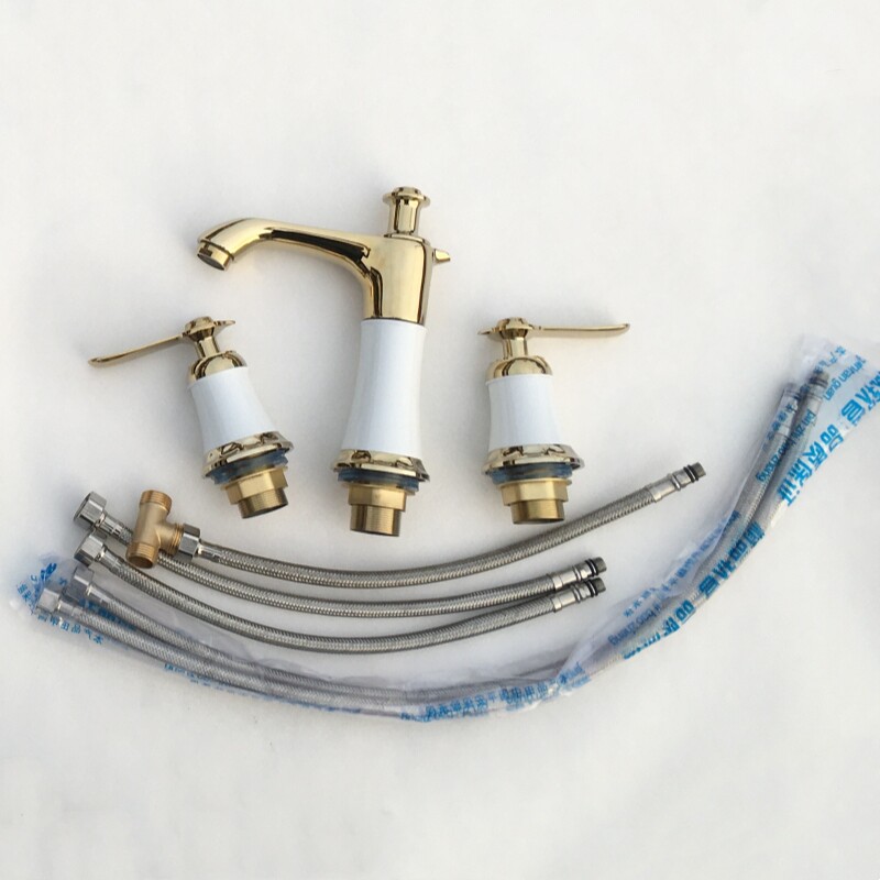 Европейский стиль сетевая сеть красная трех -яма бассейна, водяной кран, горячая и холодная ванная комната с четырьмя -дыры двойной тройной кран