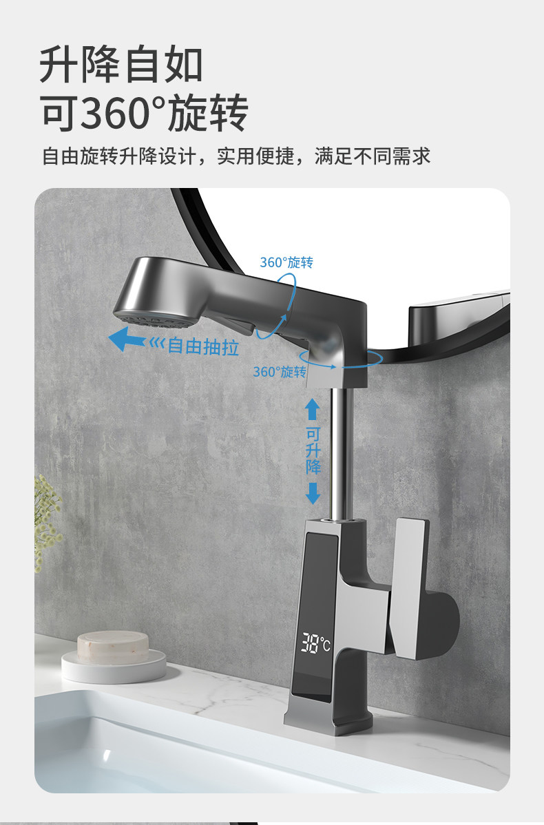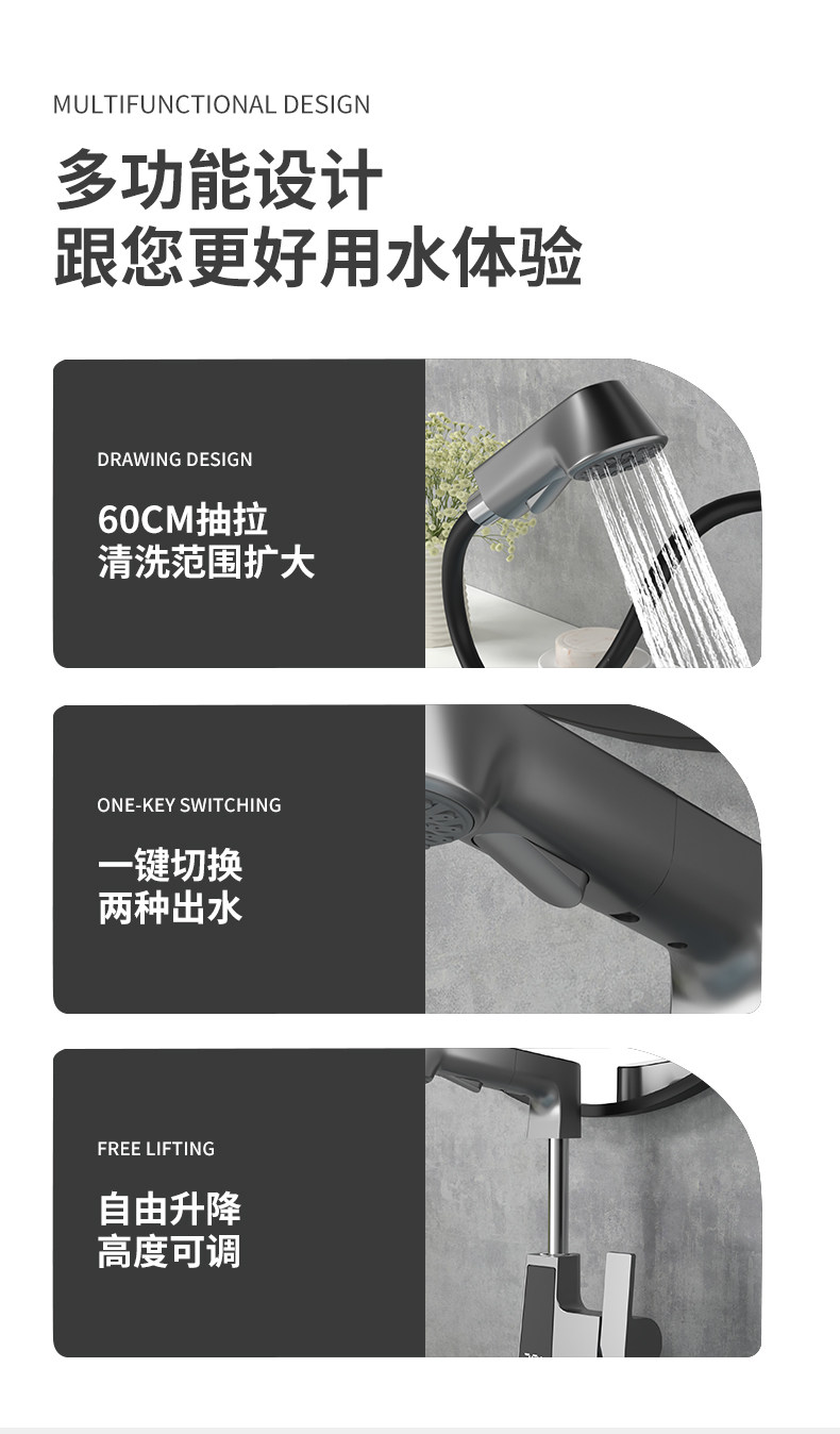 Немецкий оружейный серый горшок накачанный водный кран, горячая и холодная вода, шкаф для ванной комнаты для ванной