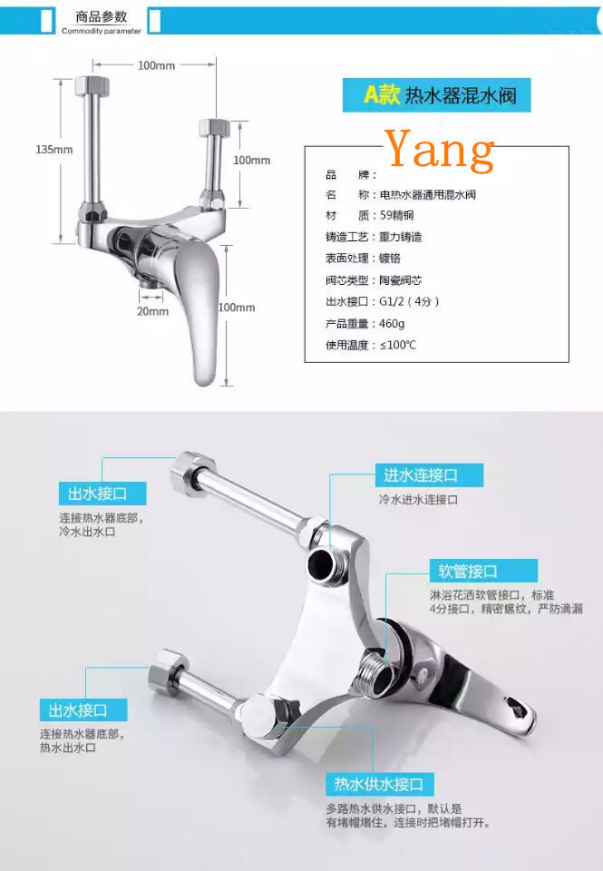 Полный медный электрический водонагреватель универсальный смешанный водяной клапан открытый -кост -u -образный клапан Смесь смешанного клапана душ горячее и холодная вода Смеситель