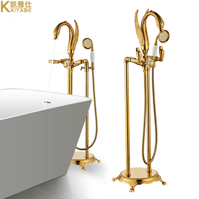 Кайяс лебедь все -брунзово -полная ванна с краном для душа душевой душ деревянный бочонок Независимый смешанный смешанный клапан горячий и холодный