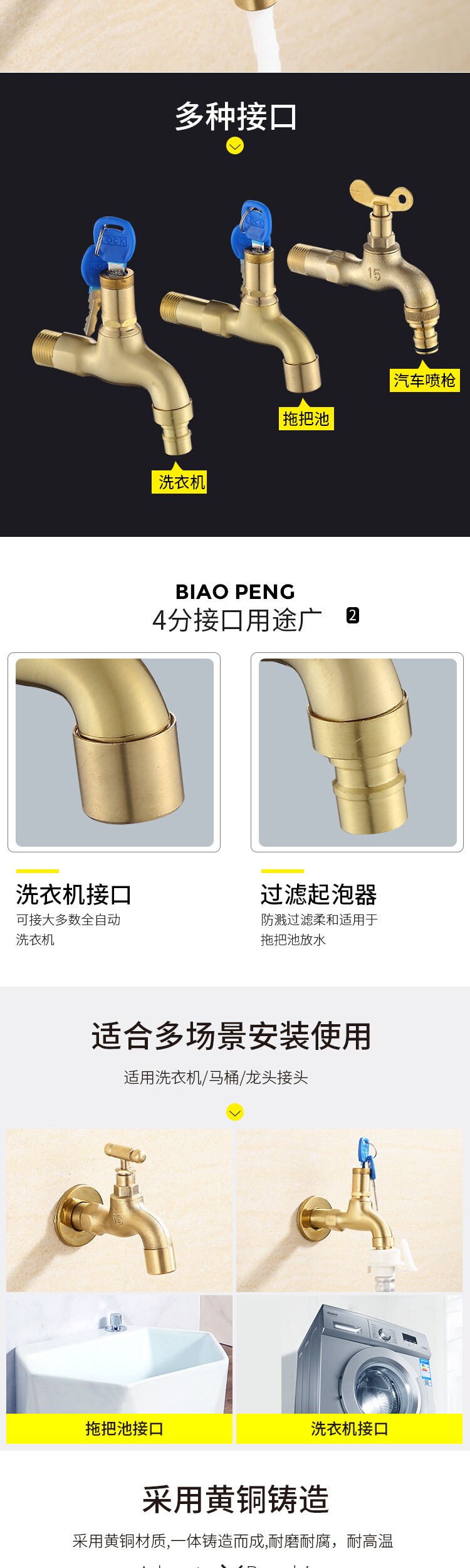 Полная медная стиральная машина для водного смесителя входит в стенную пруд 4/6, быстро открывает наружные открытые машины для мытья вода