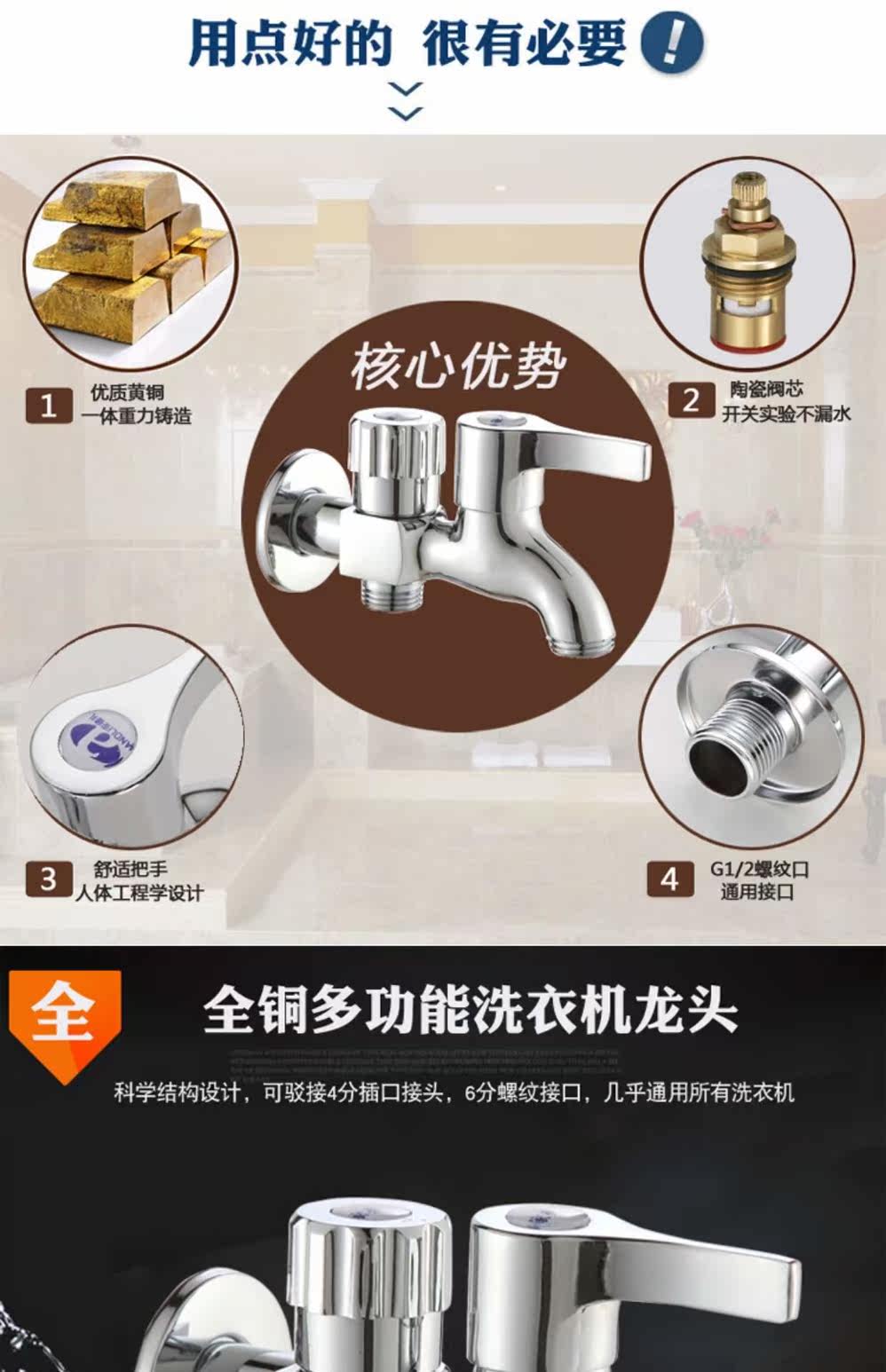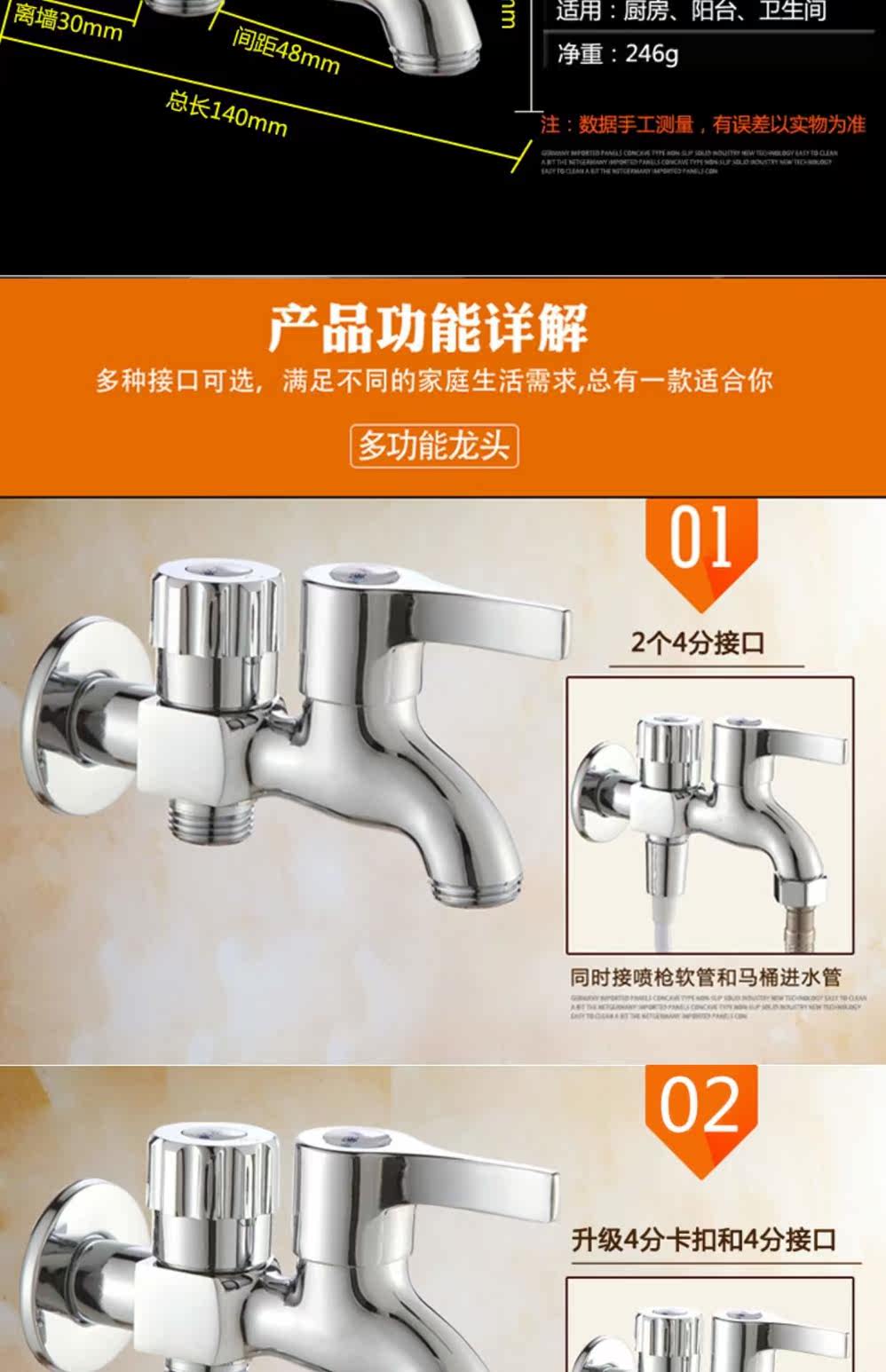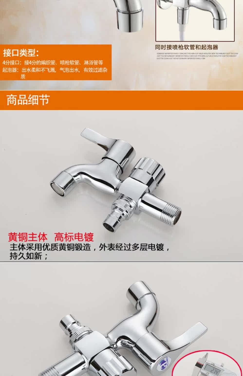 Сумасшедшая продвижение Вся медная стиральная машина вода с двойной головкой Используйте одну точку, два использования, два -два -дюймовые холодные, один холод, один вход, два из воды