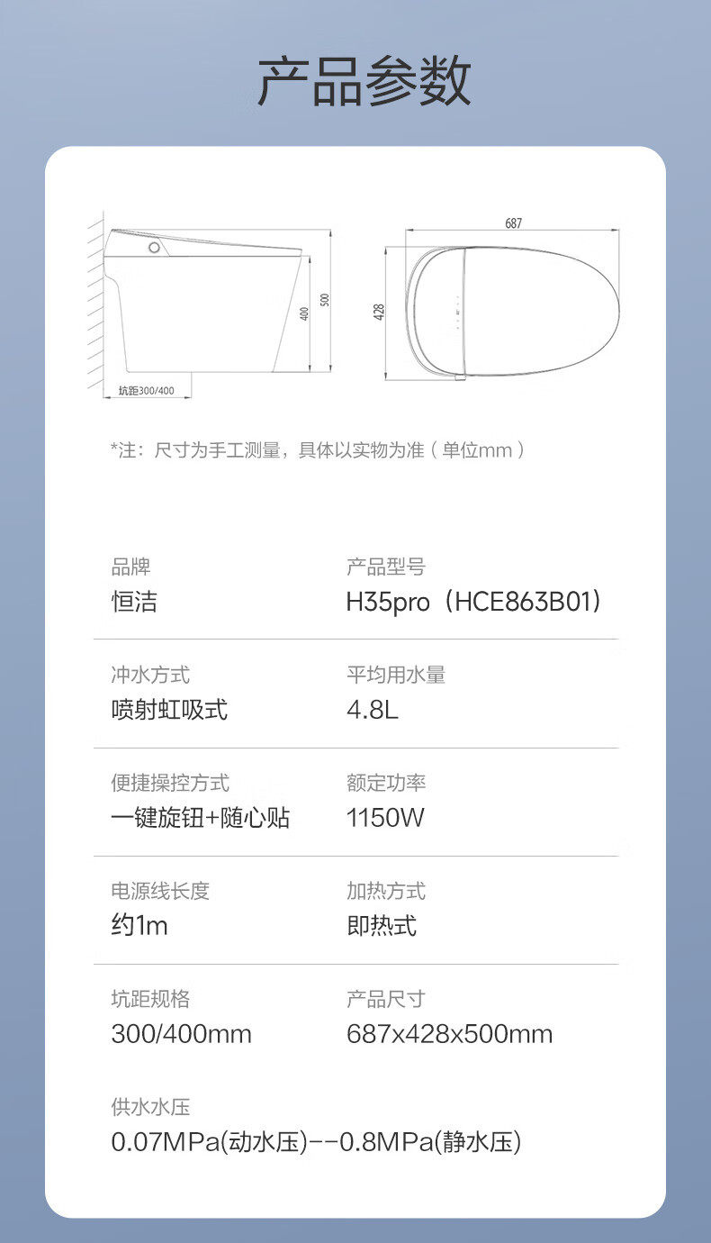 [Правительственная субсидия 15%] Hengjie Smart Toidate Автоматическое домашнее туалет с нулевым пеной пеной Flip H35p